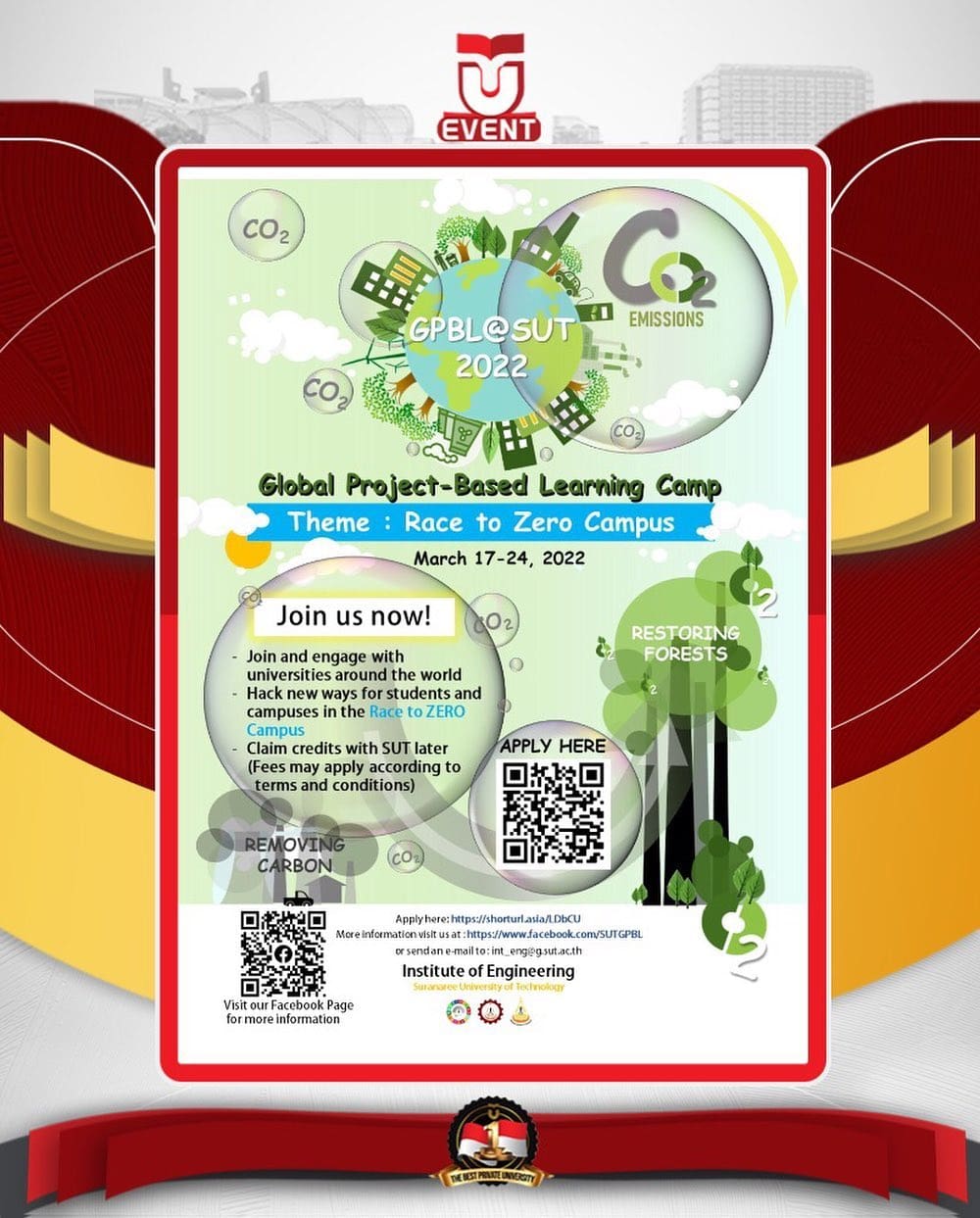 Suranaree University of Technology, Thailand is calling for students from ATU-Net member institutions, including Telkom University to participate in Global Project-Based Learning Camp 2022.