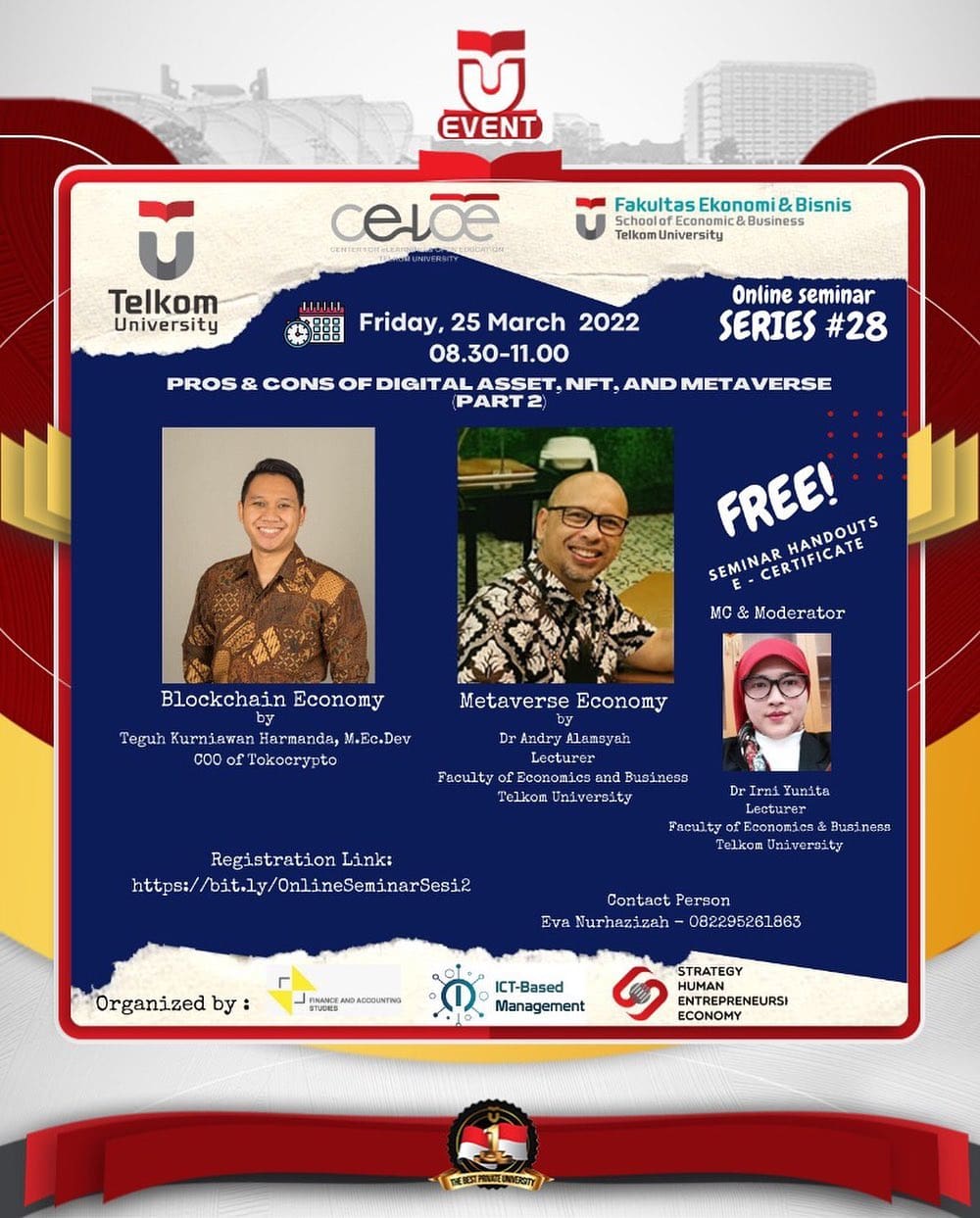 Fakultas Ekonomi dan Bisnis, Universitas Telkom dengan bangga mempersembahkan Online Seminar dengan tema :