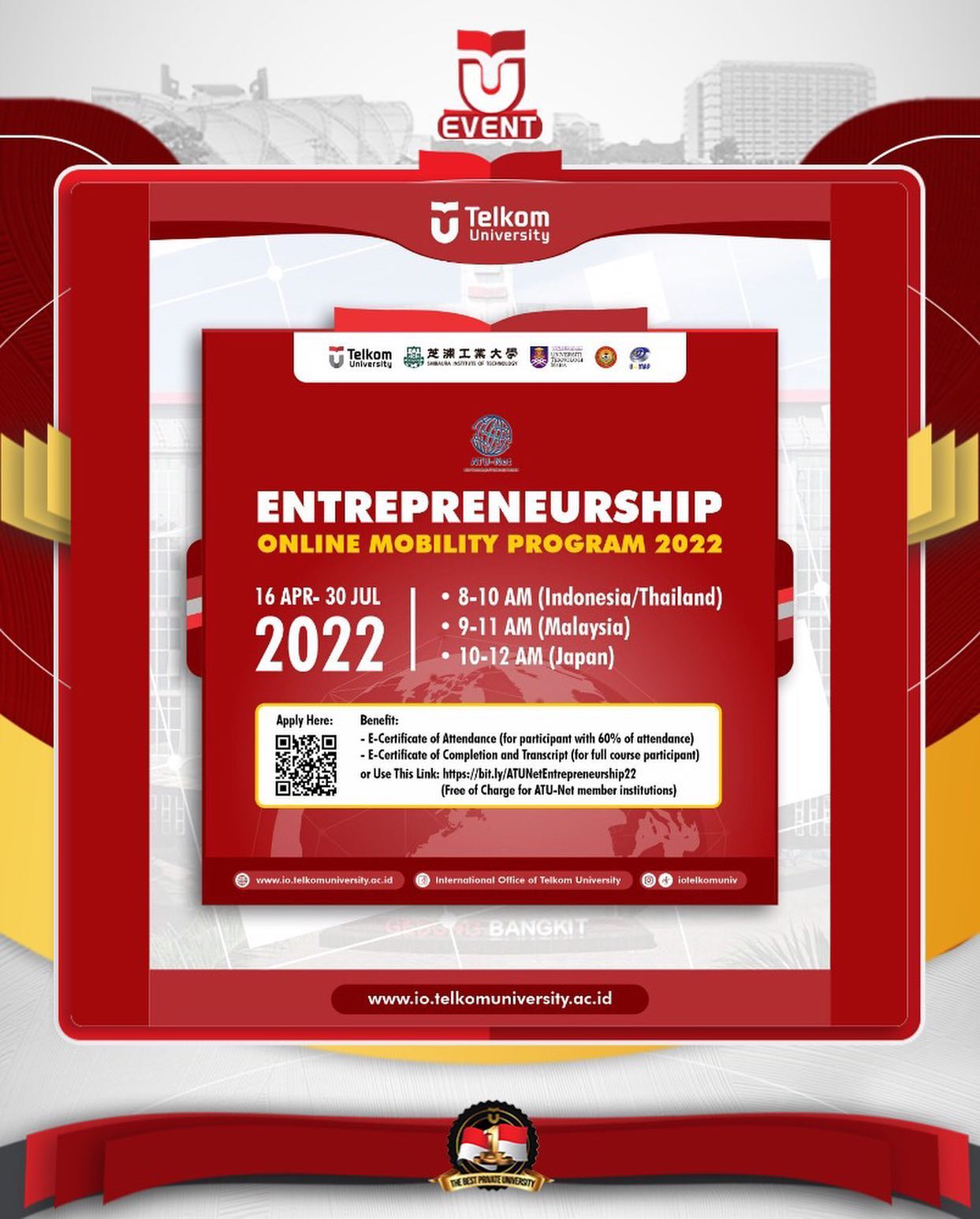 ATU-Net Member Consortium consisting of Telkom University, Shibaura Institute of Technology, Universiti Teknologi Mara, Universiti Malaysia Perlis, and Cebu Technological University cordially invite you to “ATU-Net Entrepreneurship Online Mobility Program 2022.”