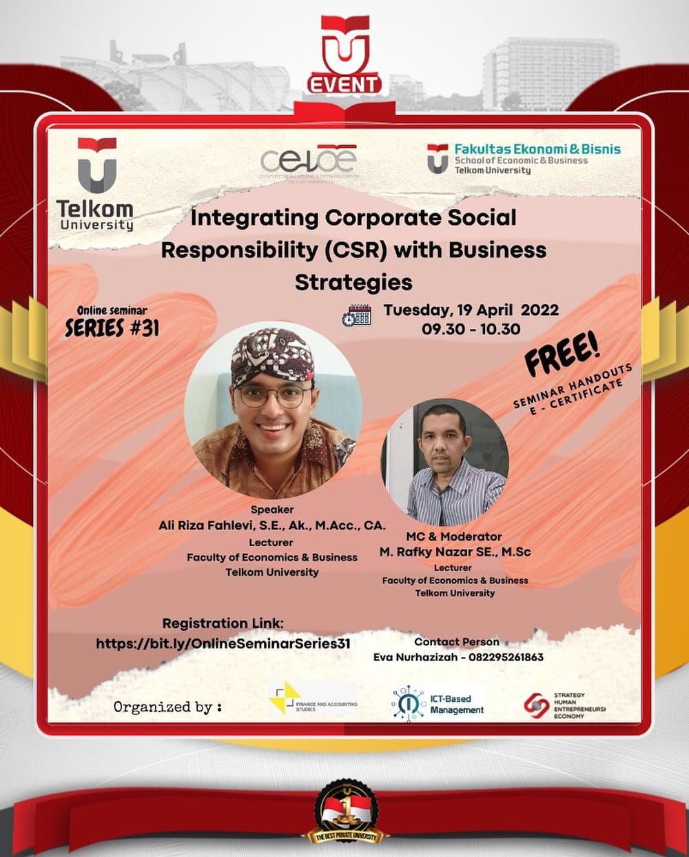Fakultas Ekonomi dan Bisnis, Universitas Telkom dengan bangga mempersembahkan Online Seminar dengan tema :