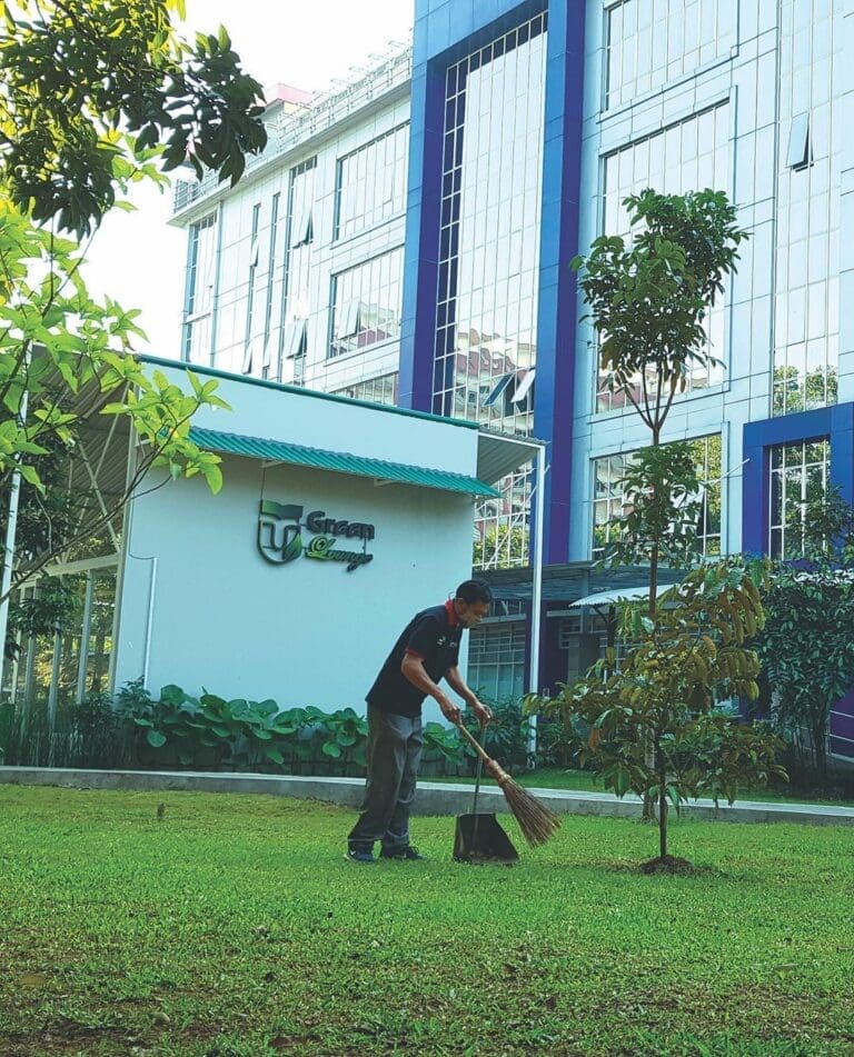 petugas kebersihan yang setiap hari merawat lingkungan di area sekitar kampus agar selalu bersih dan nyaman.