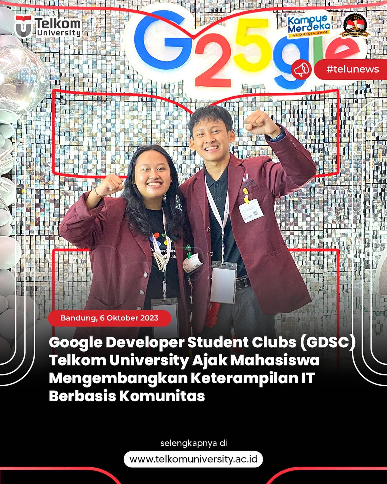 Dua mahasiswa Telkom University (Tel-U) terpilih sebagai Google Developer Studen
