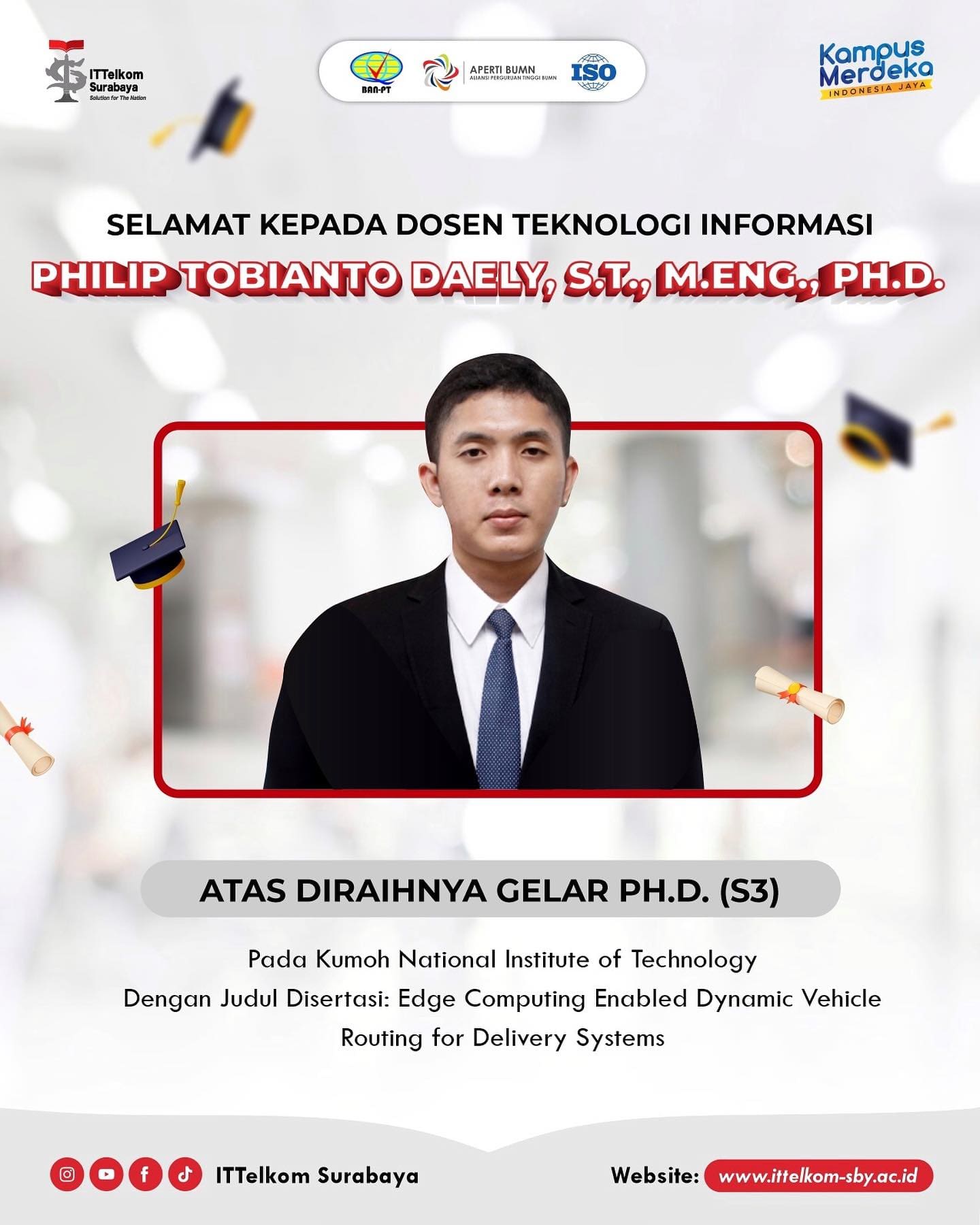 Selamat Pak Philip! 🎓🌟 Gelar Ph.D. Anda adalah hasil dari dedikasi dan kerja keras yang luar biasa. Semoga ilmu dan pengalaman Anda membawa berkah bagi para mahasiswa Teknologi Informasi ITTelkom Surabaya @it.ittelkomsby