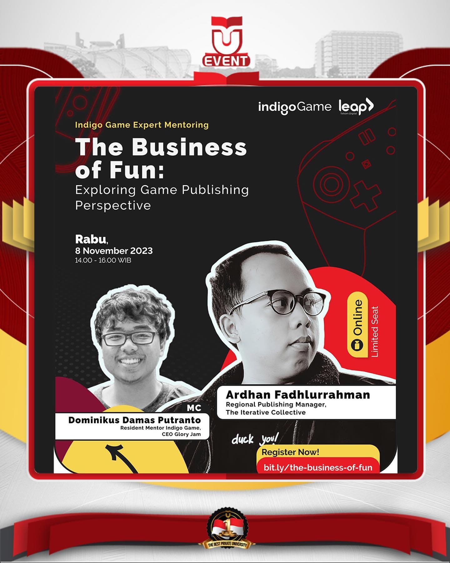HEI TelUtizen! Indigo Game sebagai inkubator game studio kali ini mengundang Ardhan Fadhlurrahman (Regional Publishing Manager, The Iterative Collective) pada event Expert Mentoring dengan topik: