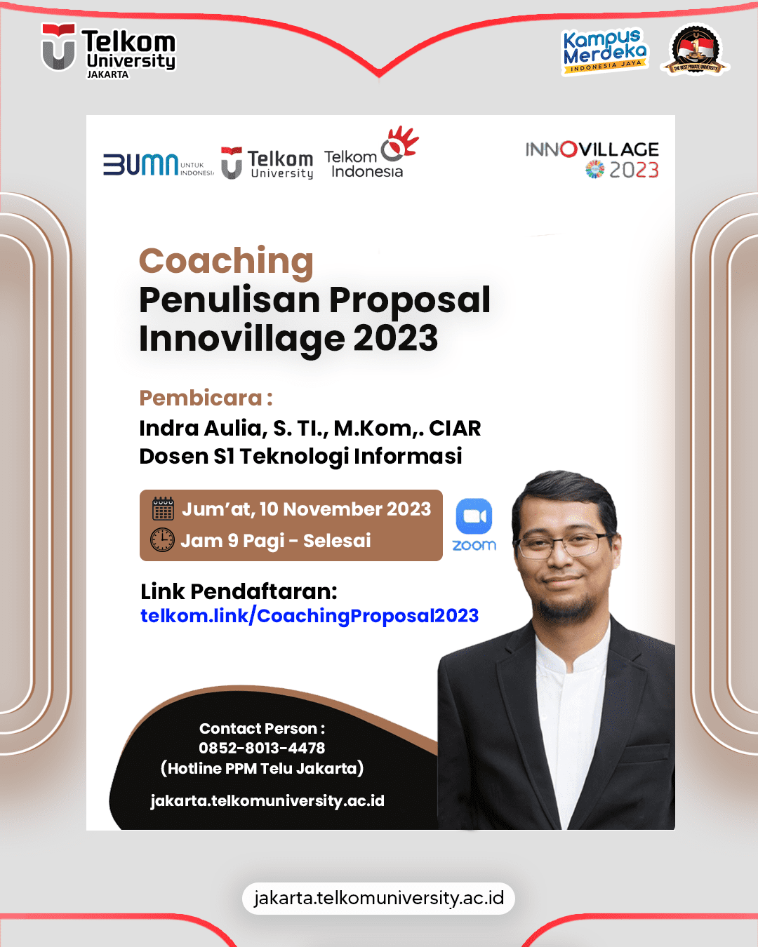 Sehubungan dengan INNOVILLAGE 2023, kami mengundang mahasiswa untuk dapat mengikuti acara Coaching Penulisan Proposal pada: