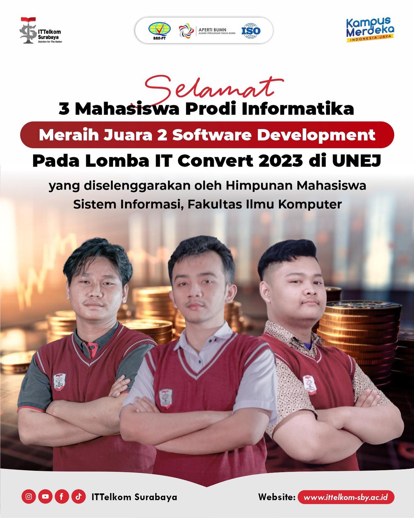 Prestasi luar biasa mereka dalam meraih Juara 2 dalam Lomba Software Development IT Convert 2023 di Universitas Negeri Jember adalah bukti kecerdasan dan dedikasi mereka. Teruslah berinovasi dan menginspirasi! ๐ก๐