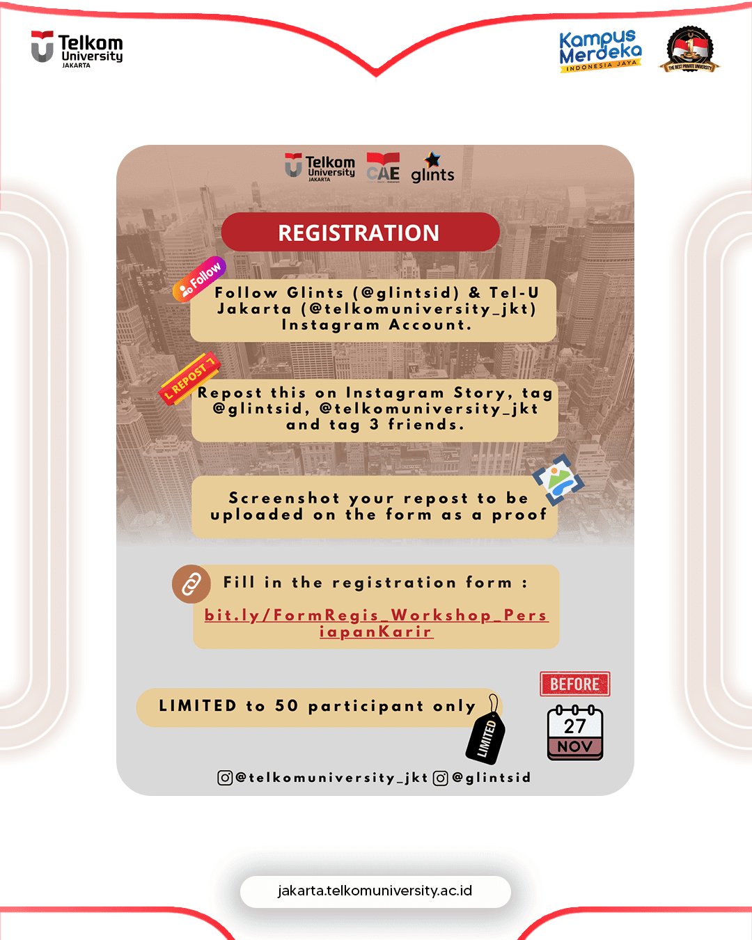 Daftarkan diri kamu di bit.ly/FormRegis_Workshop_PersiapanKarir