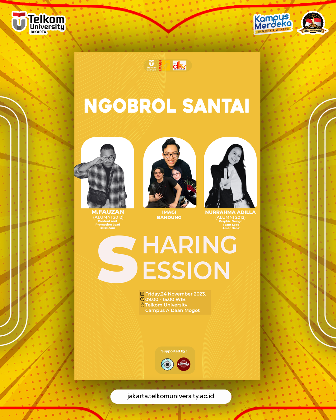 Kami dari Himpunan DKV Telkom University Jakarta (IMAGI) mengundang teman-teman angkatan 23 untuk dapat menghadiri: