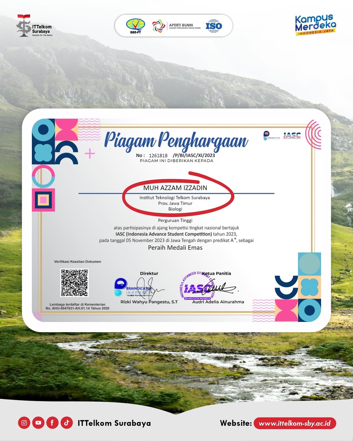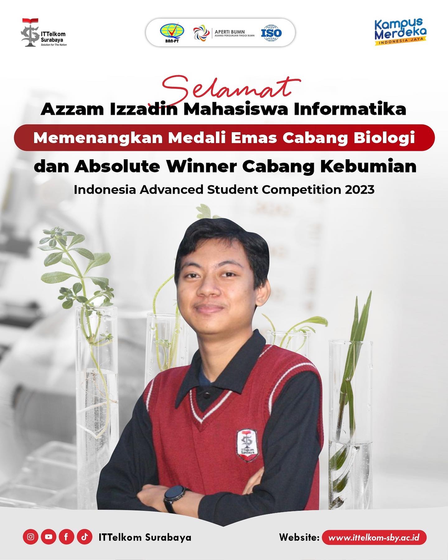 Azzam telah membuktikan keunggulannya dengan meraih prestasi yang luar biasa di Indonesia Advanced Student Competition (IASC) 2023. Dengan semangat juangnya, Azzam meraih medali emas di cabang Biologi, dan menjadi Absolute Winner di cabang Kebumian π¬ππ
