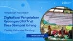 Pengabdian Masyarakat dalam bentuk Workshop Digitalisasi Pengelolaan Keuangan pada Desa Stamplat Girang Ciwidey telah dilaksanakan pada tanggal 7 Desember 2023. Tim pengabdian masyarakat diketuai oleh Dr. Wiwin Aminah dan beranggotakan Khairunnisa serta Djuznimar Zultilisna. Kegiatan ini dihadiri oleh 42 Usaha Kecil Menengah yang mengelola homestay, pertanian, perkebunan kopi, serta toko kebutuhan pokok. Pengelolaan keuangan dilakukan dengan menggunakan platform Microsoft Excel melalui telepon seluler yang dimiliki oleh setiap peserta. Hasil penelitian dipresentasikan pada Seminar Nasional Hasil Pengabdian kepada Masyarakat, the 5th Community Service and Engagement Seminar (COSECANT) 2023.
