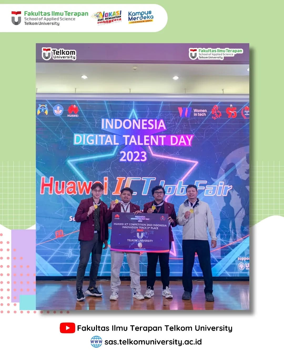 Fakultas Ilmu Terapan mengucapkan Selamat kepada Tim Perwakilan Telkom University yang telah memperoleh juara 3 dalam kompetisi Huawei ICT Competition 2023 Indonesia kategori Innovation Track yang telah diselenggarakan oleh Huawei ICT Academy di Jakarta pada 20 Desember 2023.