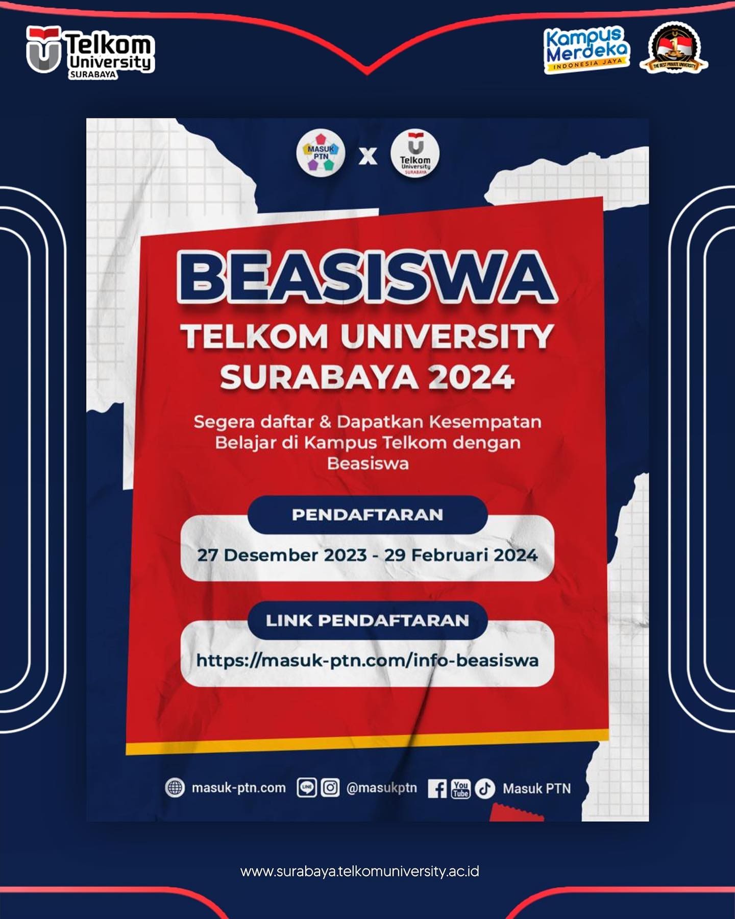 Panggilan buat kamu yang belum daftar, segera ikuti peluang mendapatkan beasiswa kuliah di Kampus Telkom!