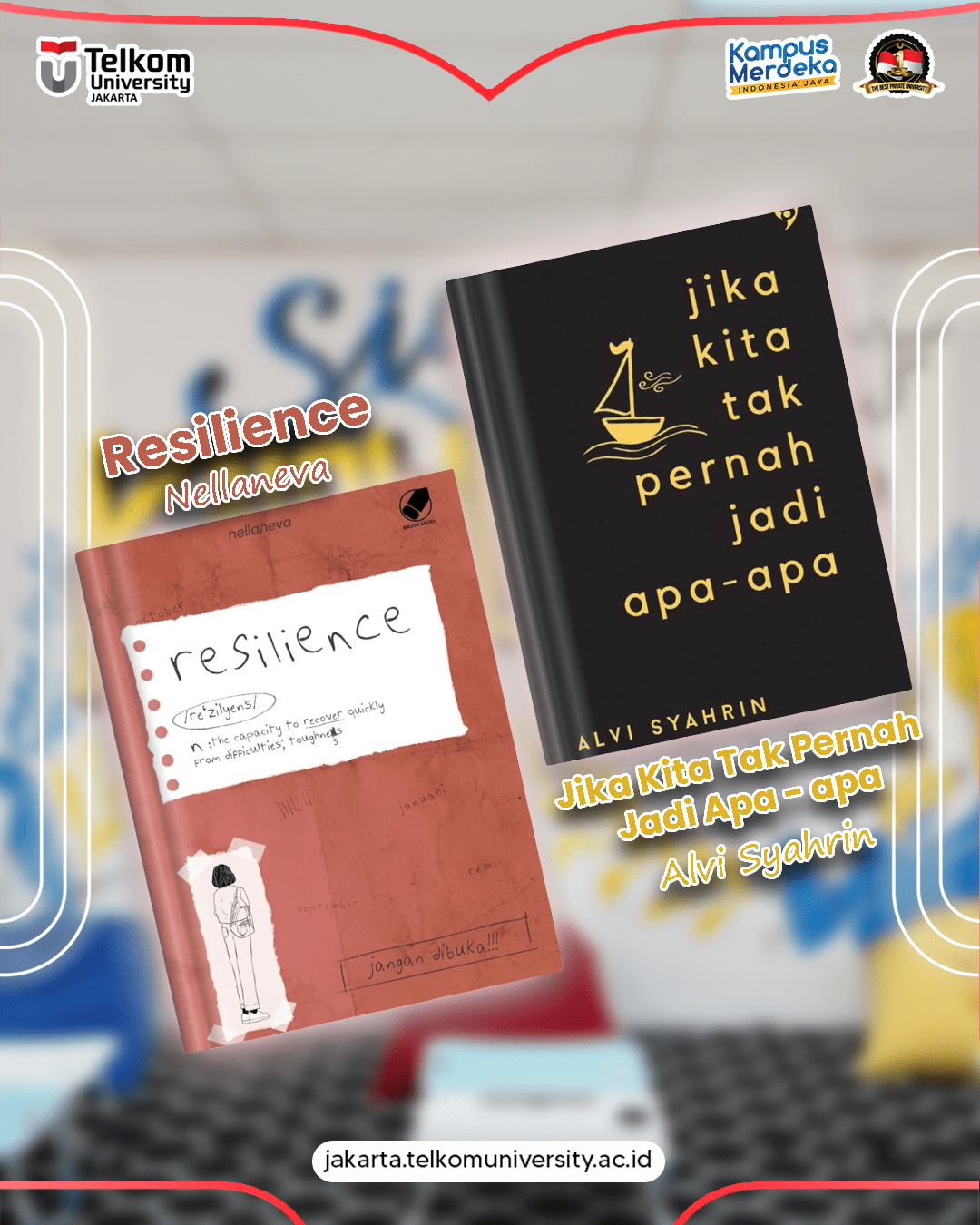 Yang mau baca bukunya bisa langsung aja datang ke Perpustakaan TelU Jakarta ya😊