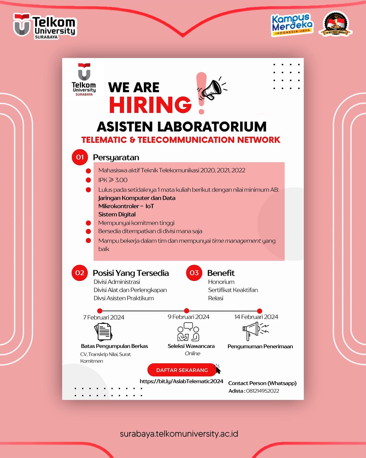 Kesempatan emas untuk menjadi staf laboratorium telah tiba. Jika kamu memiliki semangat dan keterampilan yang dibutuhkan, segera daftarkan diri kamu yaa