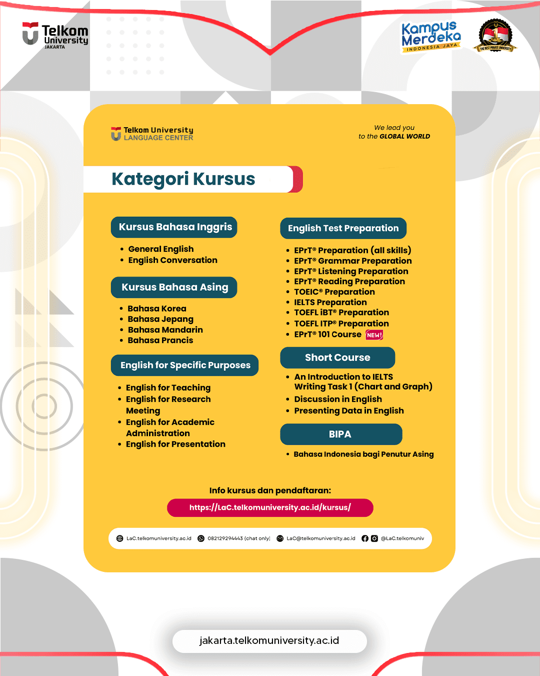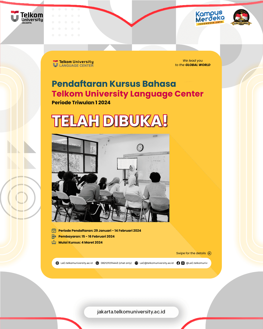 Siapa nih yang udah nungguin?! Pendaftaran kursus bahasa di Telkom University Language Center periode Triwulan 1 2024 akhirnya dibuka!🥳