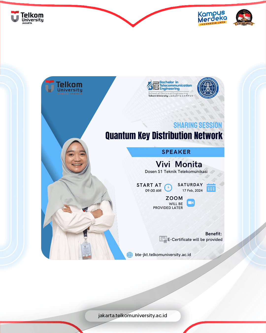 Sharing session kali ini adalah mengenai “Quantum Key Distribution Network” bersama Ibu Vivi Monita yang akan dilaksanakan pada:
