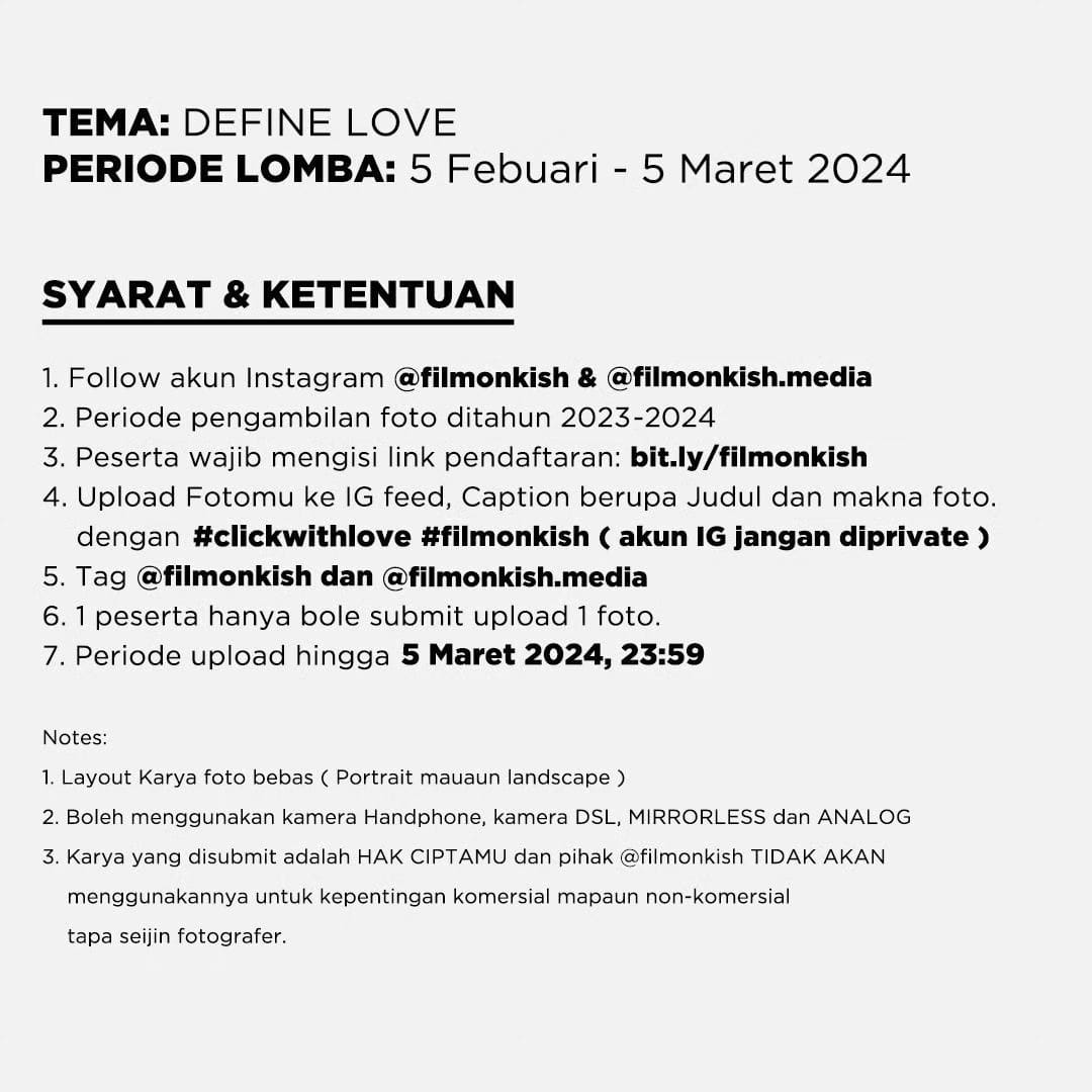 @filmonkish mengajak kamu yang suka dan hobi fotografi untuk ikutan Lomba Fotografi dengan tema