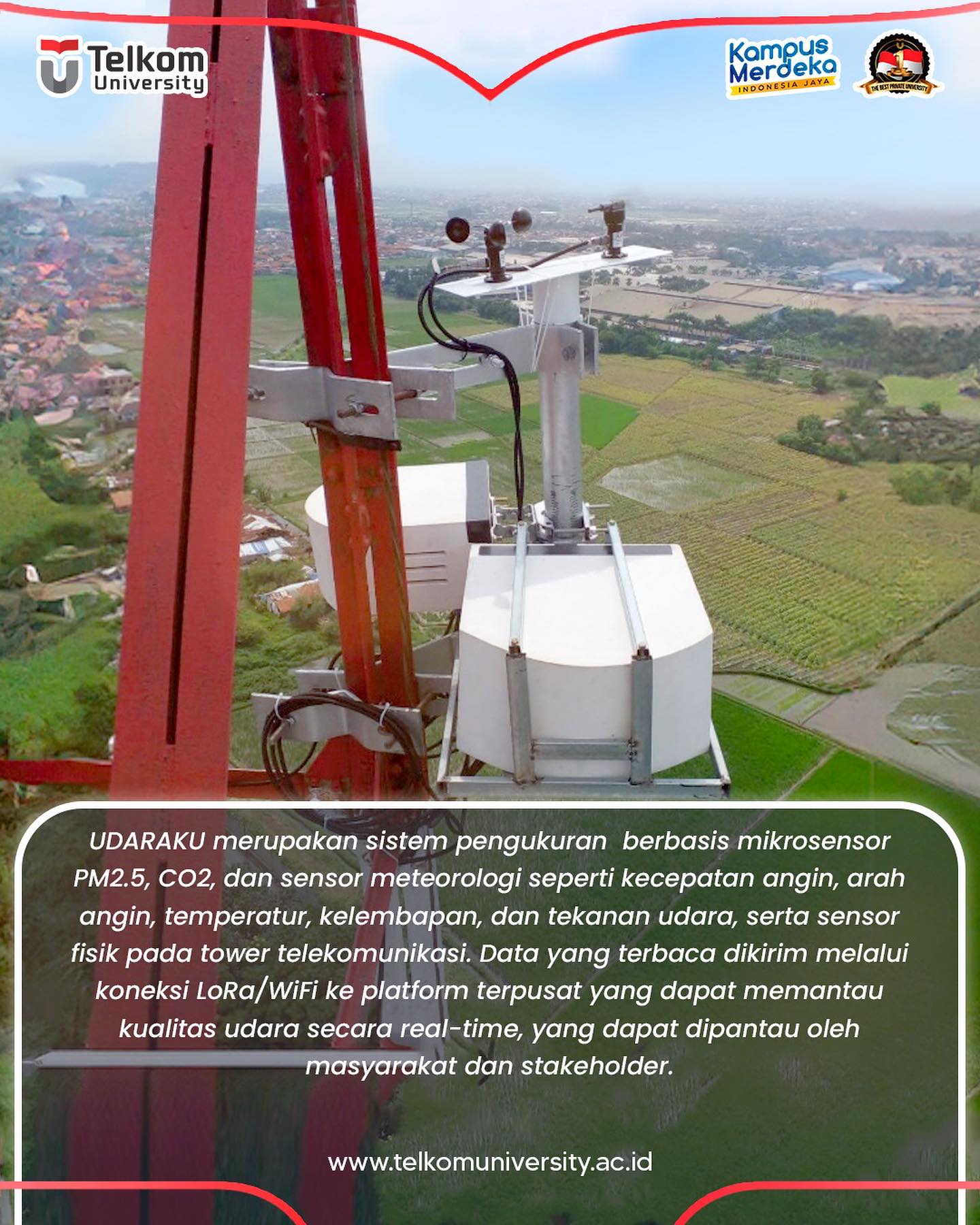 Telkom University ciptakan inovasi ‘UDARAKU’ sebagai sistem pemantau kualitas udara dari tower telekomunikasi.