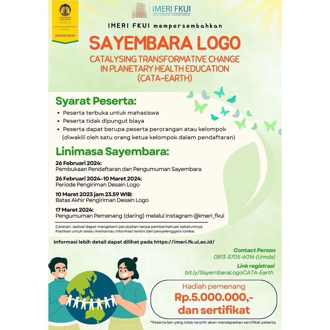 Sayembara pembuatan logo The CATA-Earth Project diharapkan dapat merepresentasikan kegiatan ini dan mampu merefleksikan pentingnya planetary health education. Oleh karena itu, kami menyelenggarakan sayembara desain logo the CATA-Earth Project.
