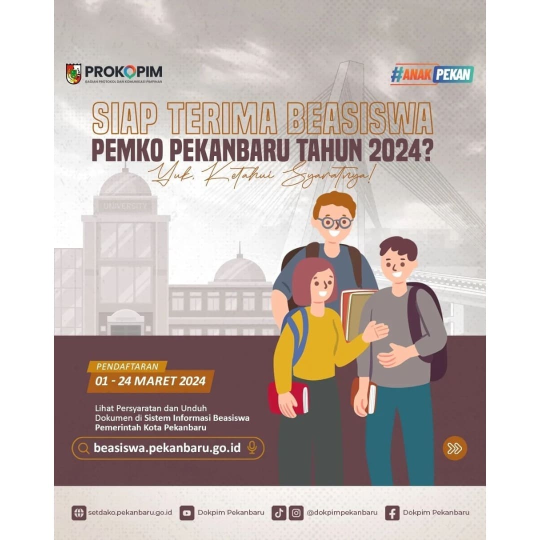 Pendaftaran Beasiswa Pendidikan Pemko Pekanbaru Tahun 2024 dibuka mulai tanggal