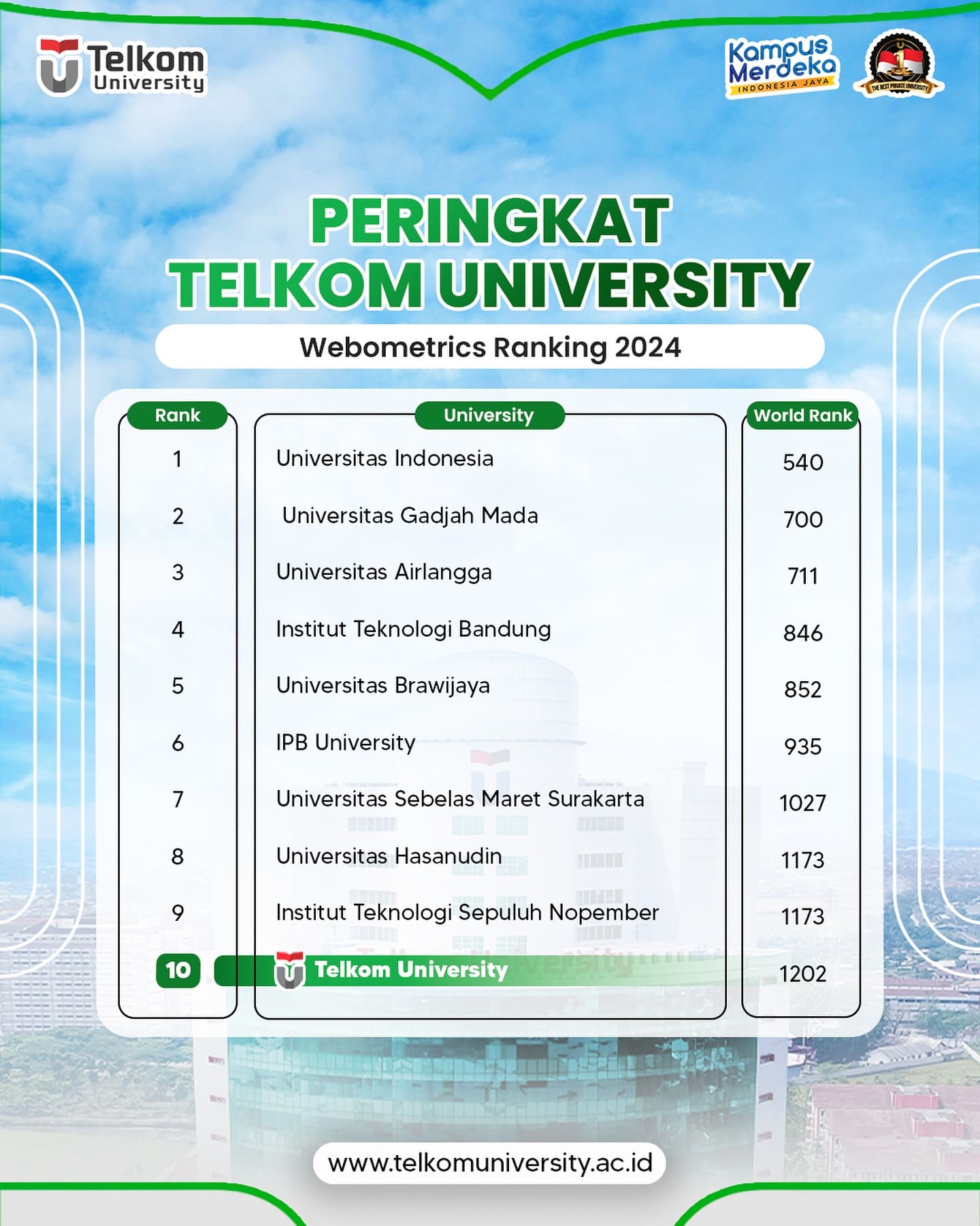HEI TelUtizen! Telkom University kembali mempertahankan sebagai Perguruan Tinggi Swasta Nomor 1 berdasarkan Webometrics Januari dan Juli 2024.