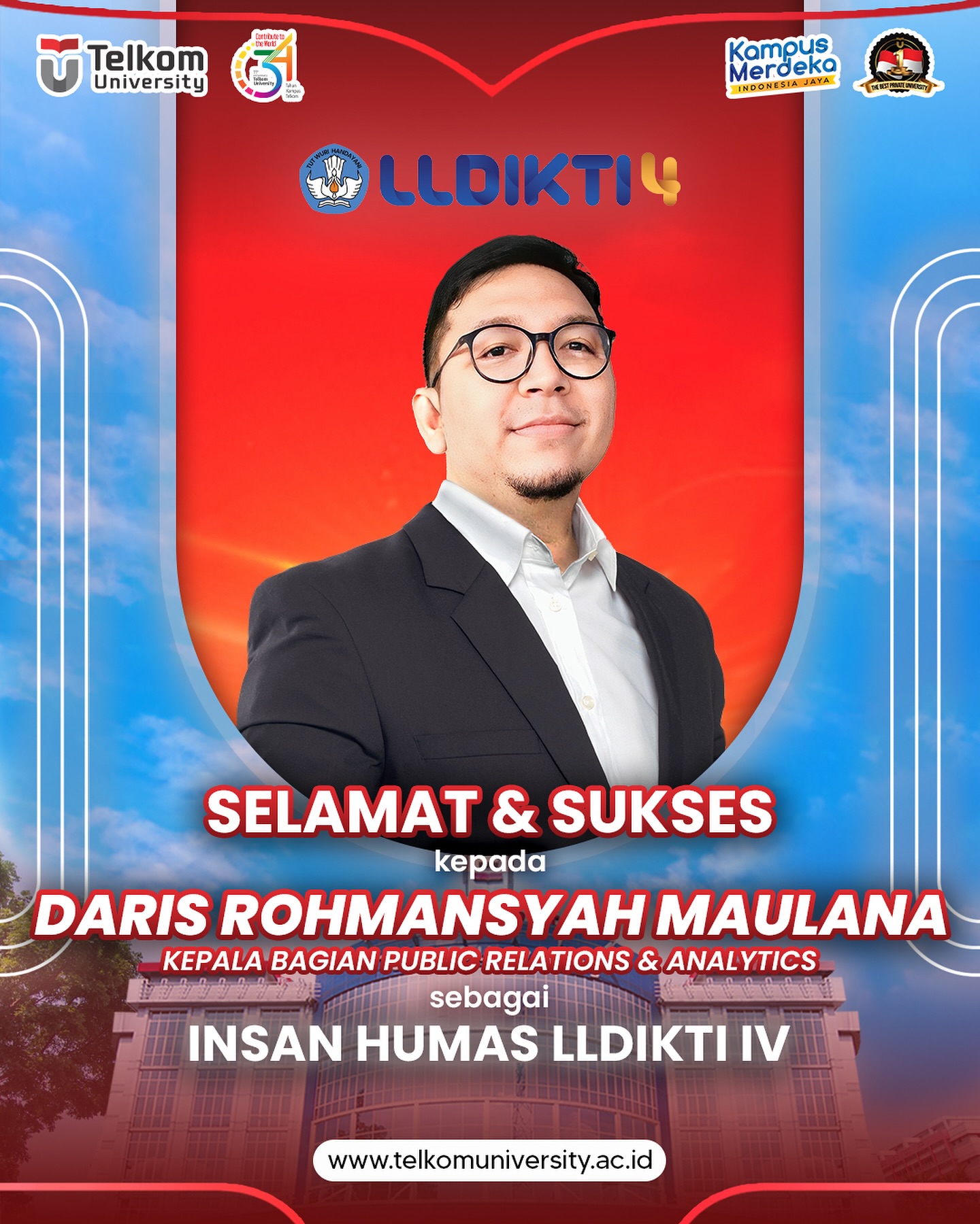HEI TelUtizen! Selamat dan Sukses kepada Kepala Bagian Public Relations & Analytics Telkom University, Daris Rohmansyah Maulana sebagai Insan Humas LLDIKTI IV! Jangan lewatkan kesempatan TelUtizen untuk mendukung Insan Humas LLDIKTI IV!! Like dan vote sekarang juga, karena setiap dukungan dari Anda sangat berharga.