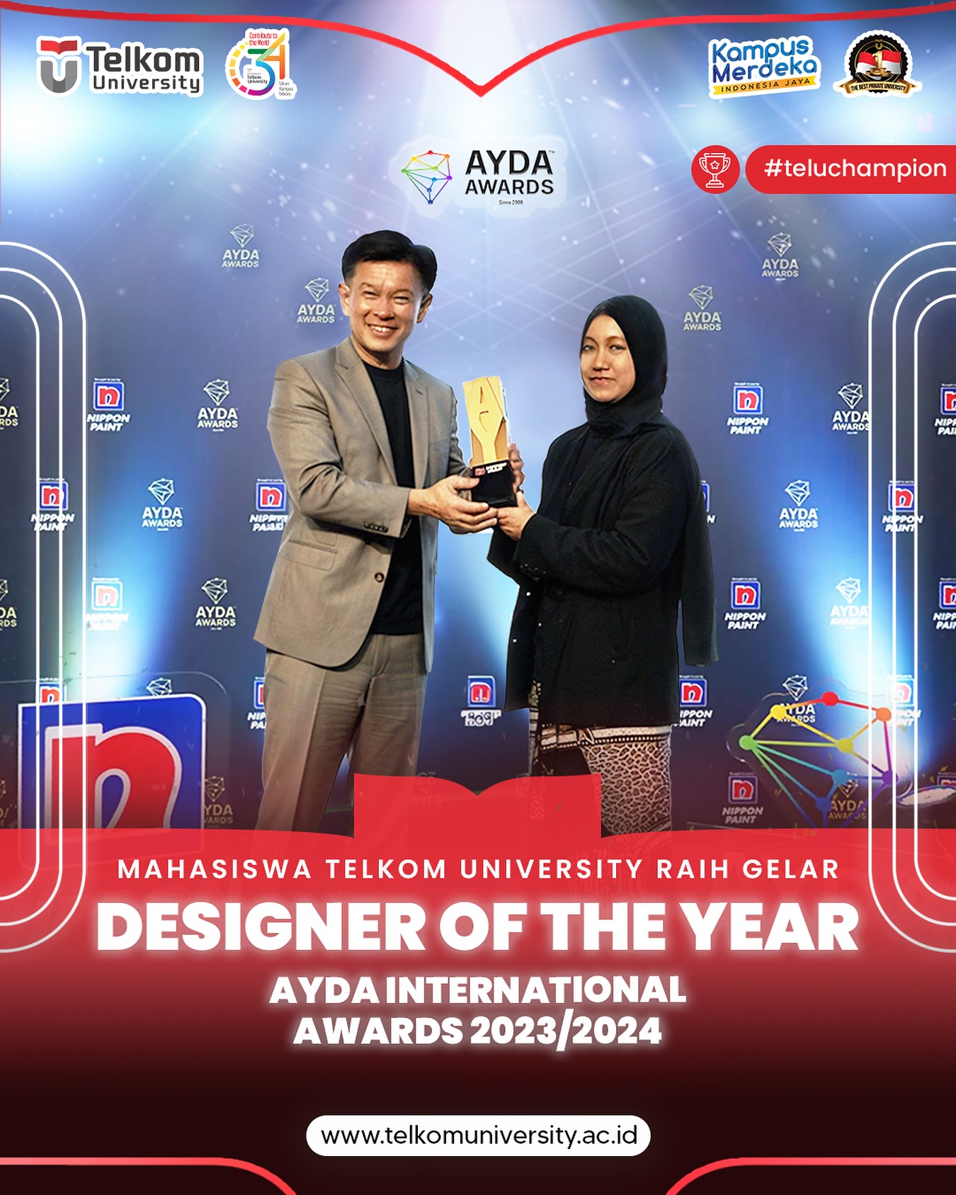 HEI TelUtizen! Mahasiswa S1 Desain Interior, Fakultas Industri Kreatif Telkom University, Alifiah Azzahra Raih Gelar β€˜Designer of The Year’ di AYDA International Awards 2023/2024 loh!