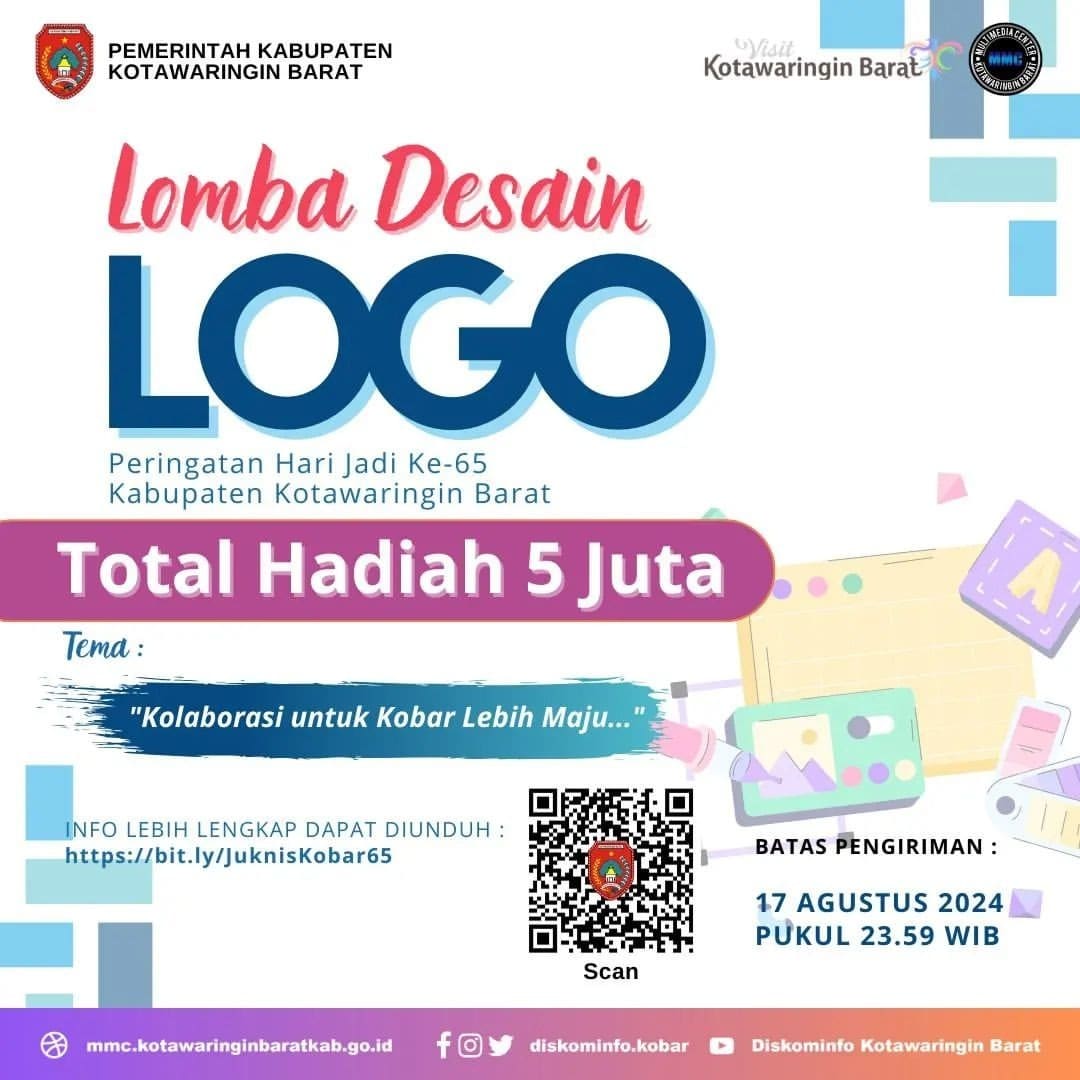Siapa nih yang hobi buat desain? Yuk salurkan bakat kalian dengan mengikuti Lomba Desain Logo dalam rangka peringatan Hari Jadi ke – 65 Kabupaten Kotawaringin Barat.