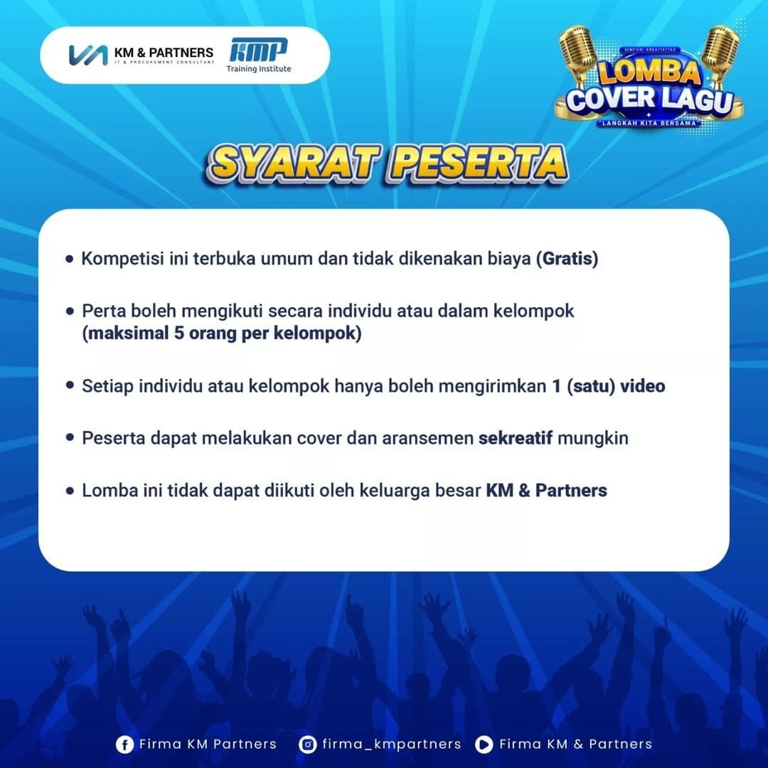 buat kalian yang suka bernyanyi dan bermusik, Yuk !! tunjukkan kemampuan vokalmu dan Ikuti lomba cover lagu yang diadakan oleh Firma KM & Partners.