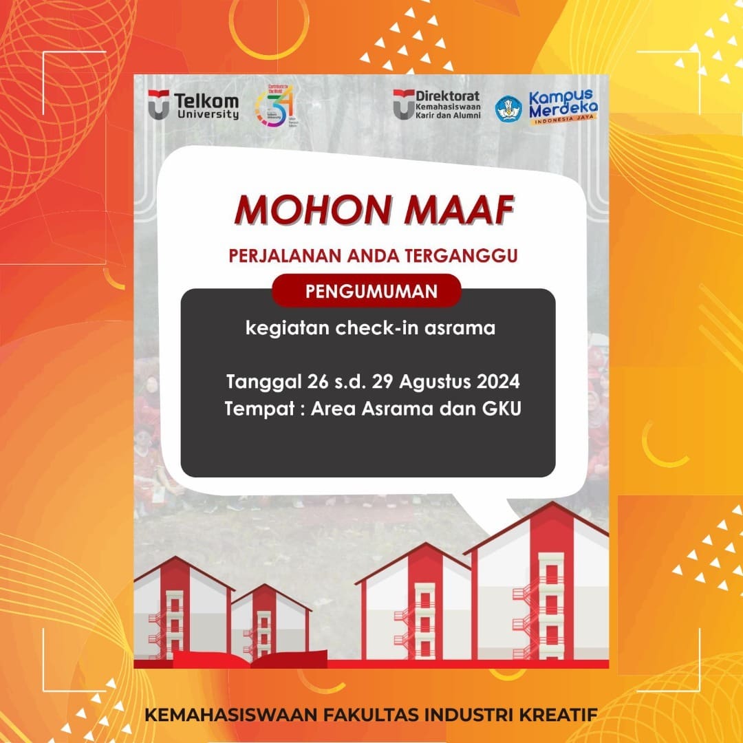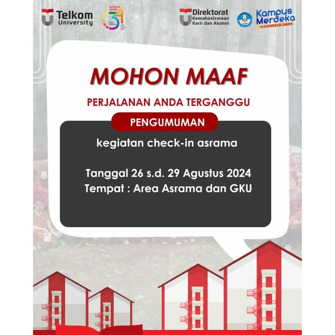 Mohon maaf aktivitas Bapak Ibu terganggu, saat ini sedang berlangsung CHECK In ASRAMA