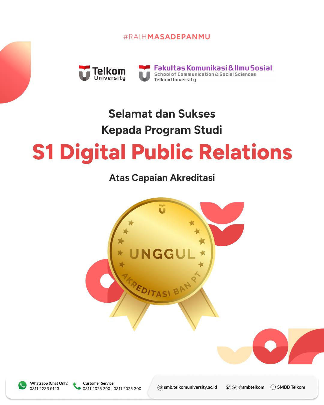 Selamat untuk Program Studi S1 Digital Public Relations Telkom University atas capaian akreditasi Unggul 🏅