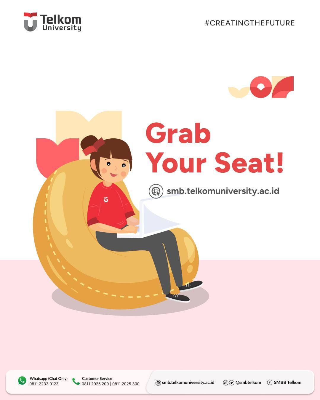 Informasi pendaftaran selengkapnya hanya di smb.telkomuniversity.ac.id
