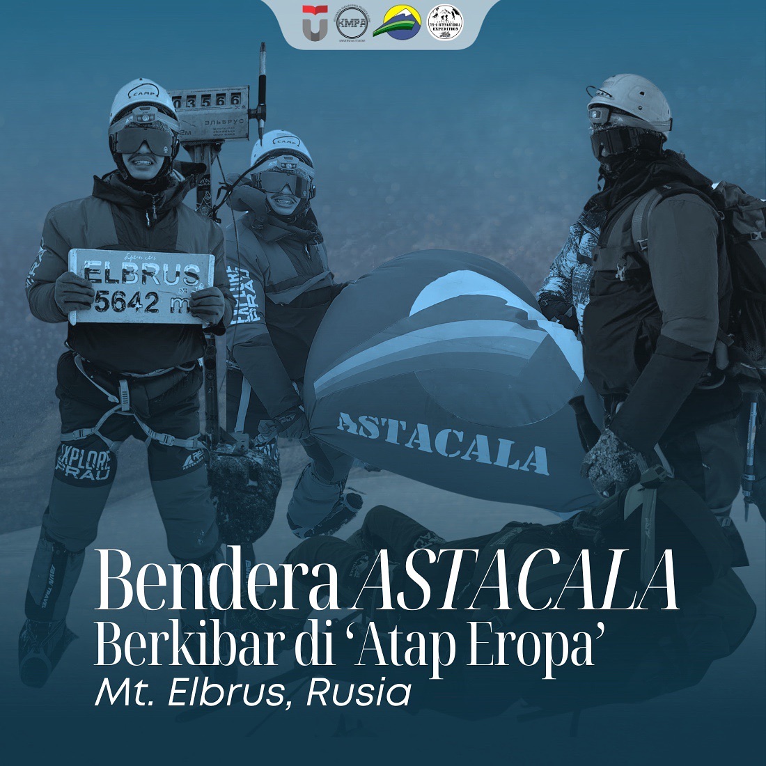 Astacala kembali membentangkan benderanya di Gunung Elbrus, salah satu seven summit dunia, setelah pada tahun 2018 berhasil sampai di Uhuru Peak Kilimanjaro 5.895 MDPL, Tanzania. Dengan ini, kami bangga menjadi salah satu anak bangsa yang dapat berpartisipasi dalam mengharumkan nama Indonesia di kancah dunia, yang juga pada bulan ini bertepatan dengan Hari Kemerdekaan Indonesia yang ke-79.