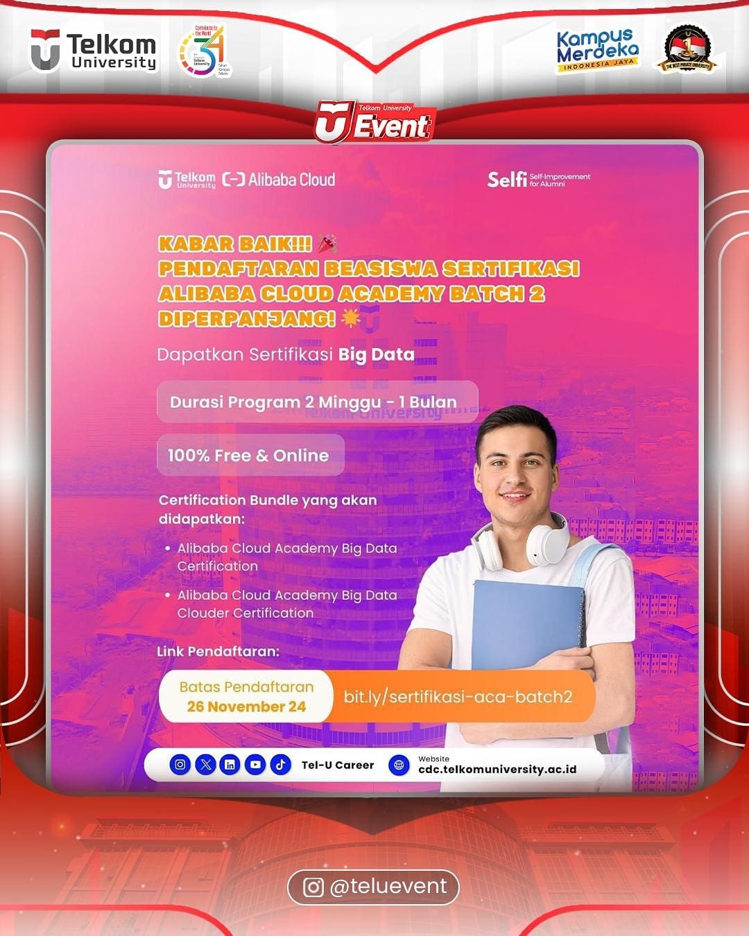 #TelUCareer #BeasiswaSertifikasi #BigData #AlibabaCloud #TelkomUniversity #SelfImprovement