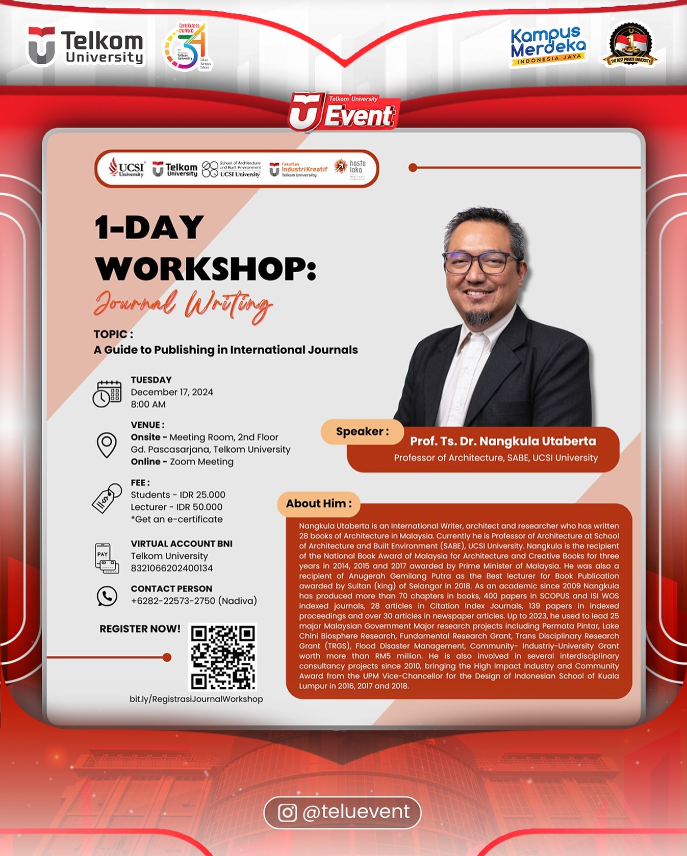 Bagaimana cara efektif untuk mempublikasikan karya ilmiah di jurnal internasional? Bergabunglah dalam 1-Day Workshop: Journal Writing dengan topic ‘A Guide to Publishing in International Journals’ bersama Prof. Ts. Dr. Nangkula Utaberta dan dapatkan panduan langkah demi langkah tentang proses publikasi yang sukses! ✍✨