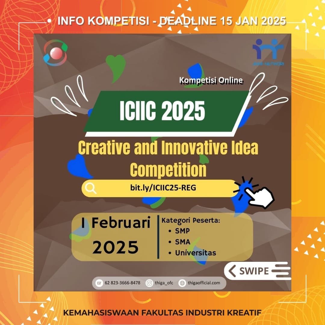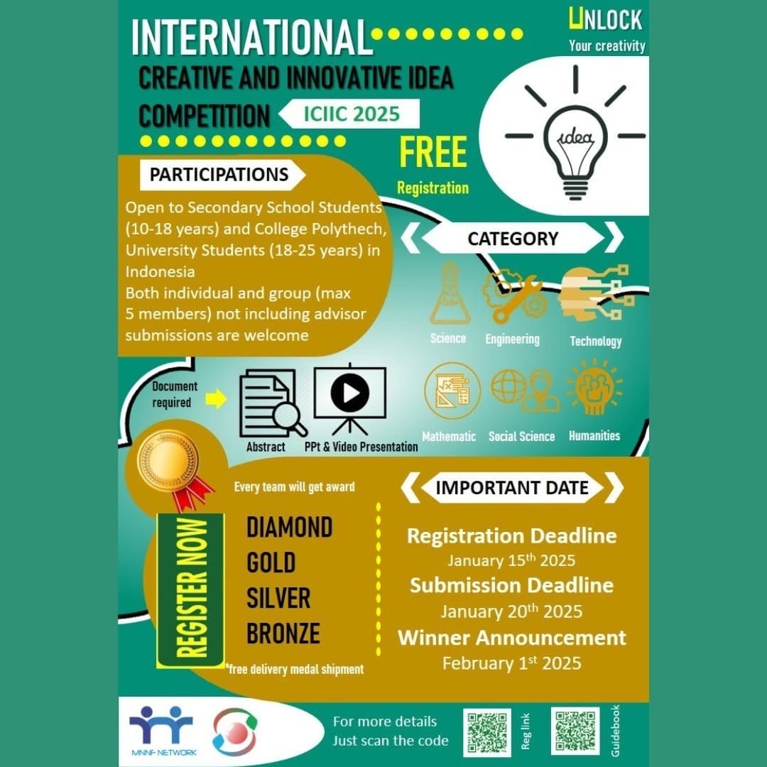 “πβ¨ Kabar gembira untuk semua siswa dan mahasiswa! π’ Siap-siaplah untuk memulai perjalanan inovasi dan meraih peluang global dan ikuti kompetisi tingkat internasional “Creative and Innovative Idea Competition (ICIIC) 2025”