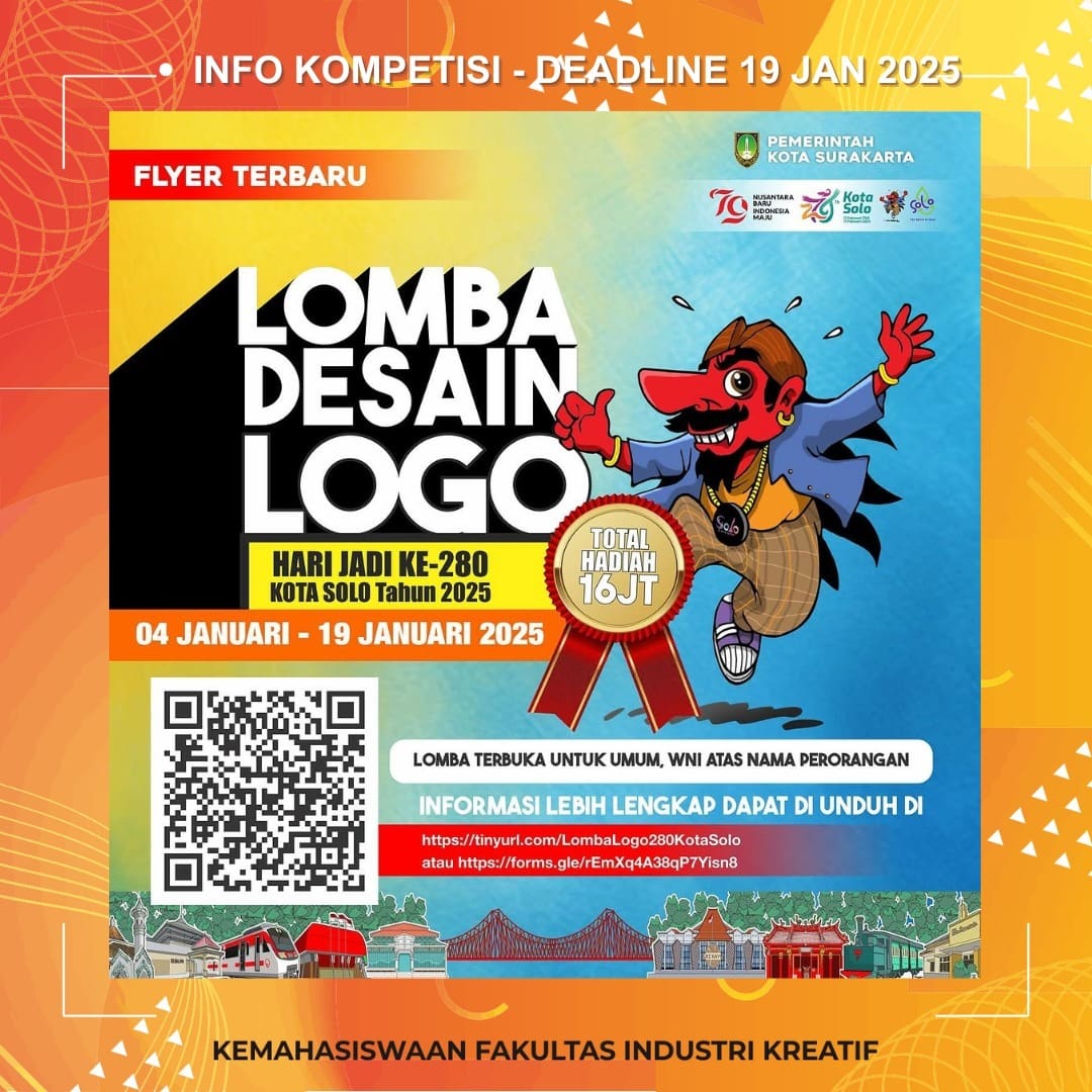 Informasi selengkapnya bisa didapatkan melalui link https://tinyurl.com/LombaLogo280KotaSolo , https://forms.gle/rEmXq4A38qP7Yisn8 , atau Scan barcode pada Flyer.