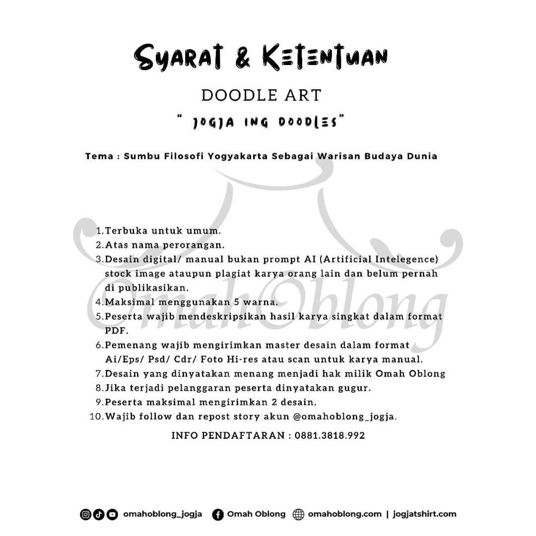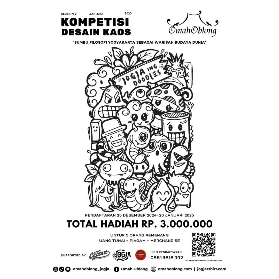 Ikuti Kompetisi Desain Kaos Season 2 “Jogja Ing Doodles” dan jadilah inspirasi bagi banyak orang dengan karya desainmu. ✨