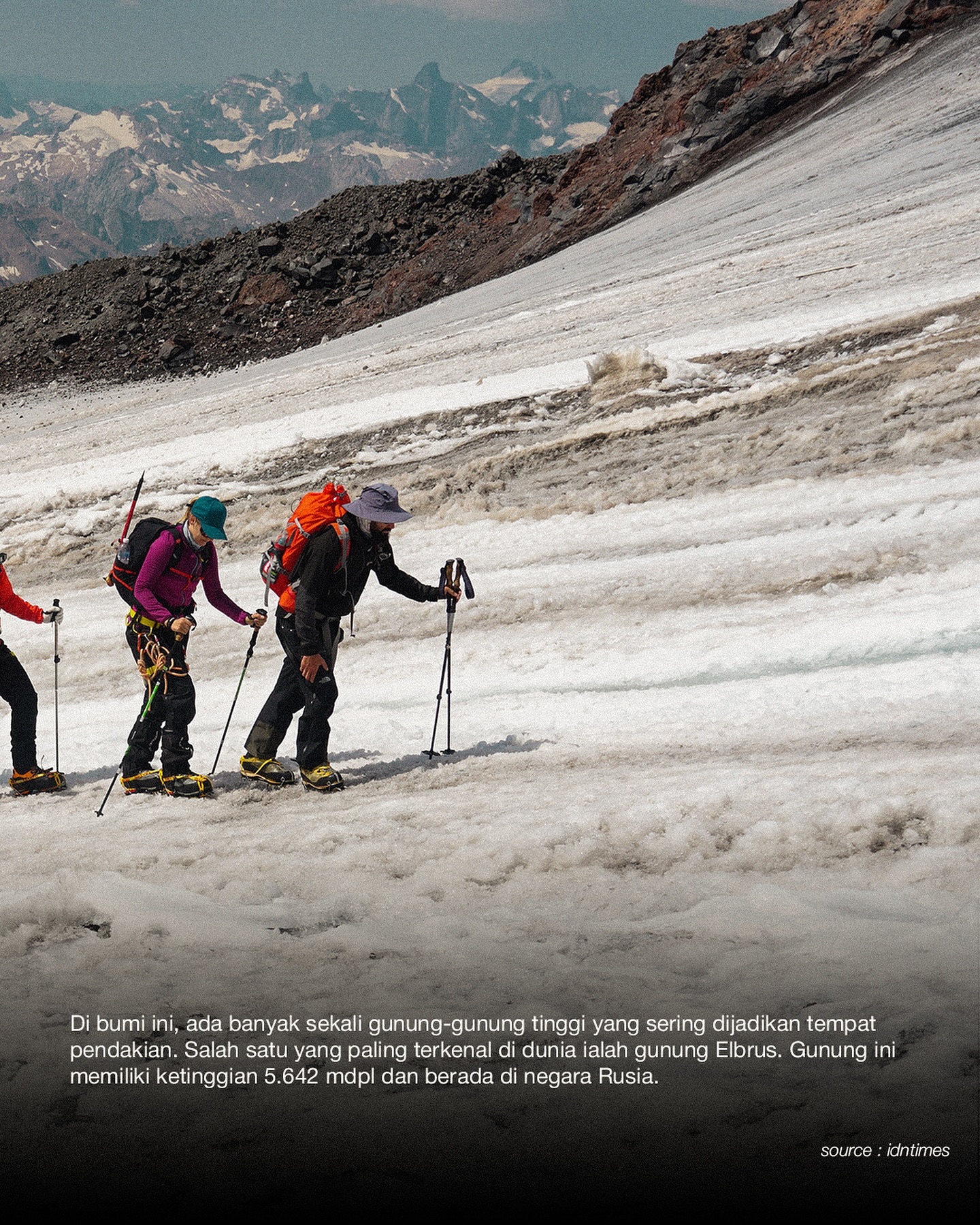 Gunung Elbrus adalah gunung tertinggi di Eropa dan salah satu dari Seven Summits, yaitu tujuh puncak tertinggi di masing-masing benua. Berikut beberapa fakta menarik tentang Gunung Elbrus: