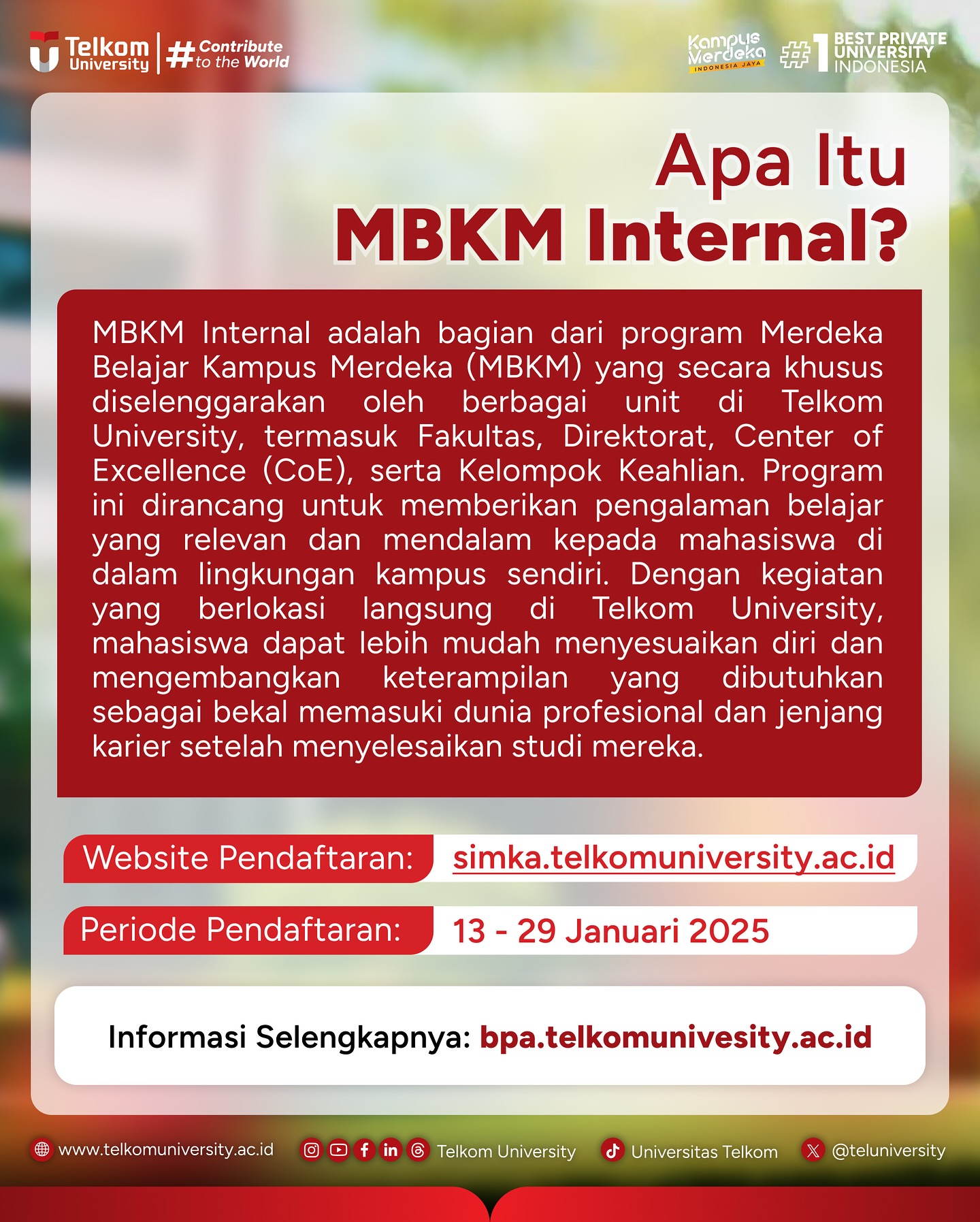 #TelkomUniversity #KampusSwastaTerbaik #CreatingTheFuture #ContributeToTheWorld #EntrepreneurialUniversity #SustainabilityUniversity
