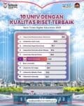 Bangga! Telkom University berhasil menempati peringkat ke-6 dengan skor 36,0 dalam kategori Kualitas Riset versi Times Higher Education (THE) 2025 di Indonesiaπβ¨
