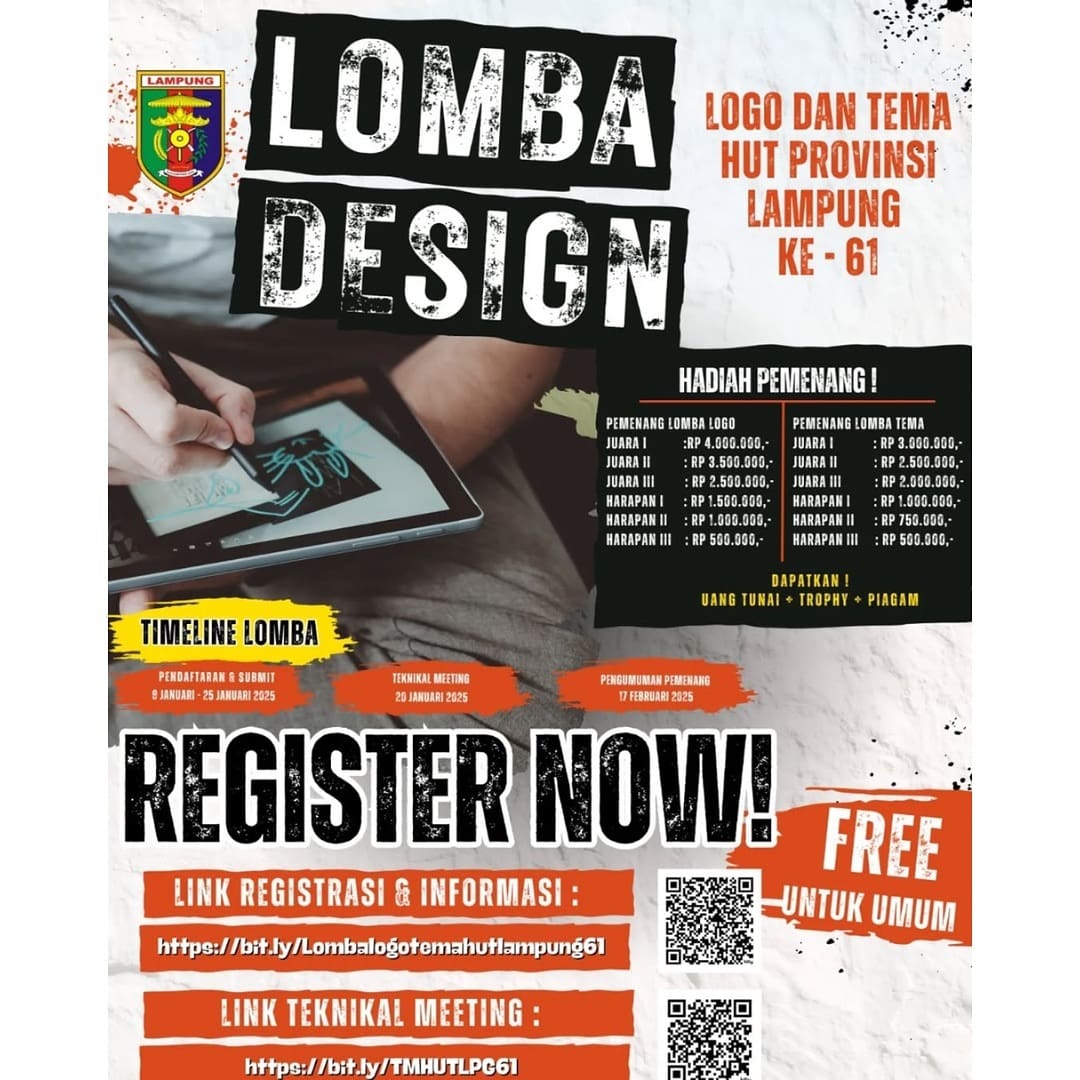 Untuk informasi lebih lanjut dan detail persyaratan, para peserta yang berminat dapat mengunjungi akun Instagram resmi Pemerintah Provinsi Lampung atau melalui link registrasi dan informasi :