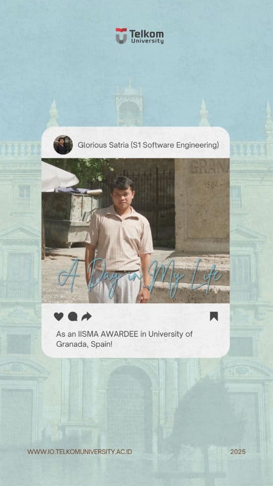 Follow Glorious Satria Dhamang Aji, a proud Telkom University student and IISMA Scholarship recipient 2024, as he takes on an inspiring academic adventure at the University of Granada, Spain! From engaging classes to soaking in the rich Spanish culture, see what life is like for an Indonesian student abroad. 🌍🎓🇪🇸