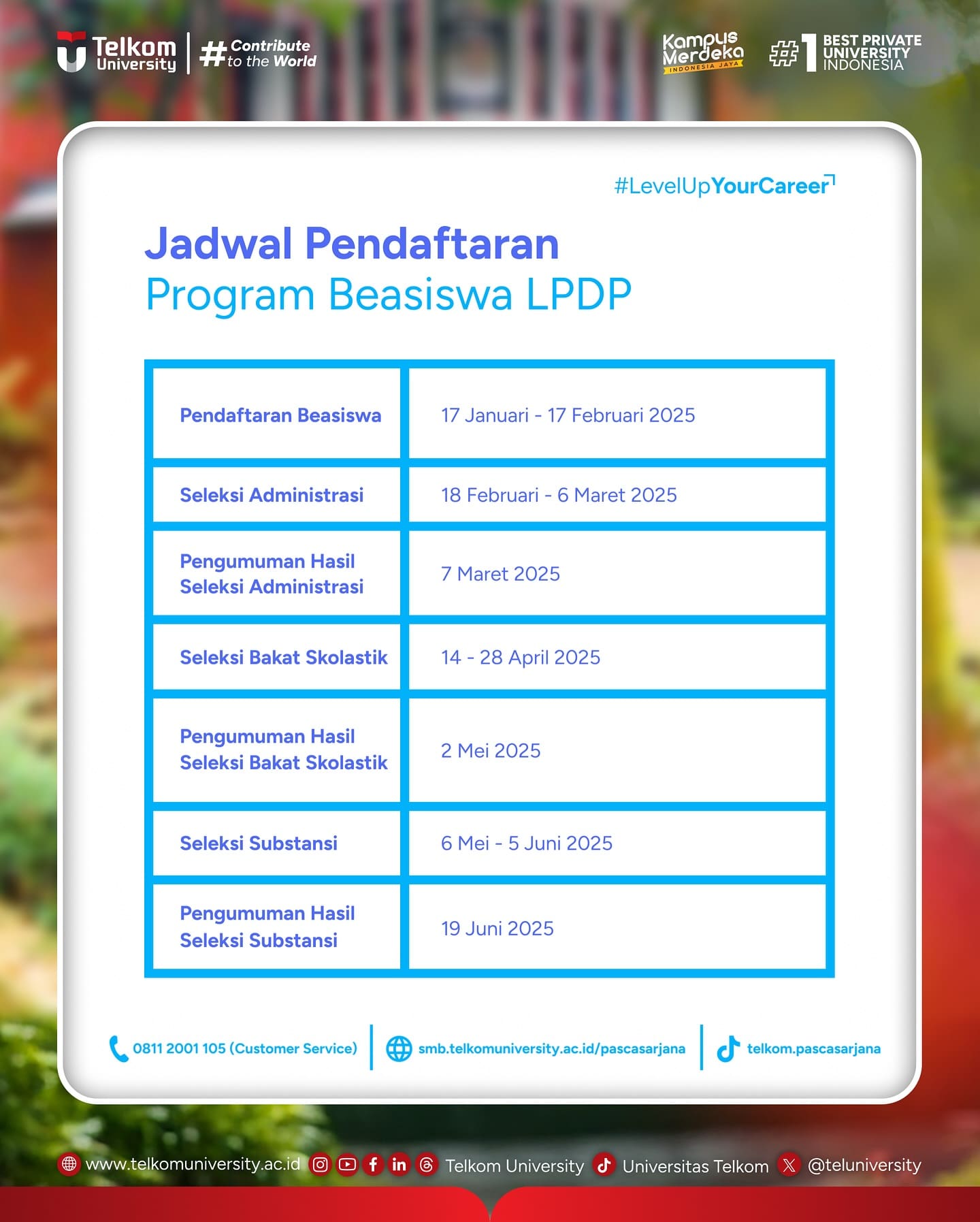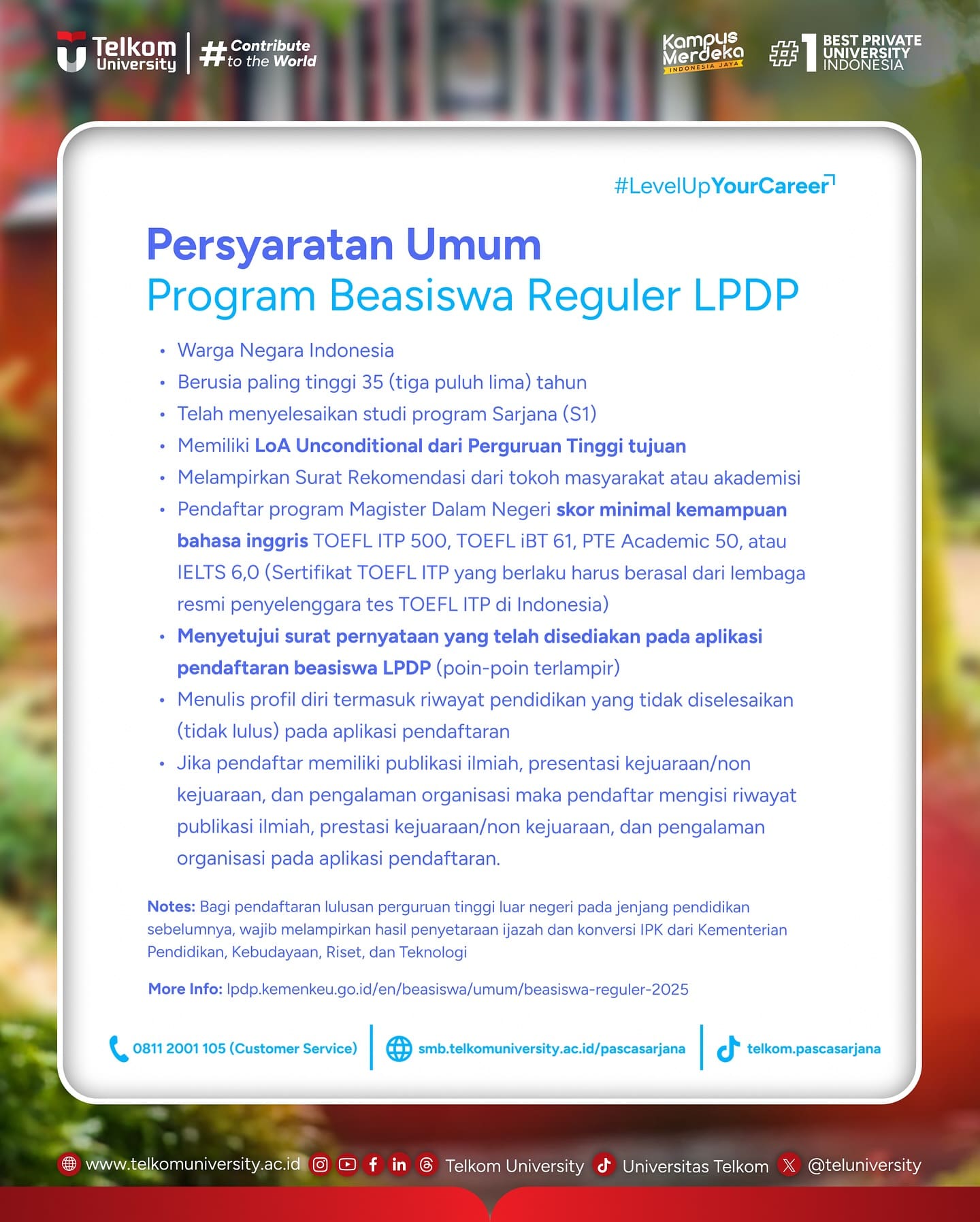 HEI Tel-Utizen!!! Jalur Basiswa LPDP Telkom University Telah Dibuka Segera dafta