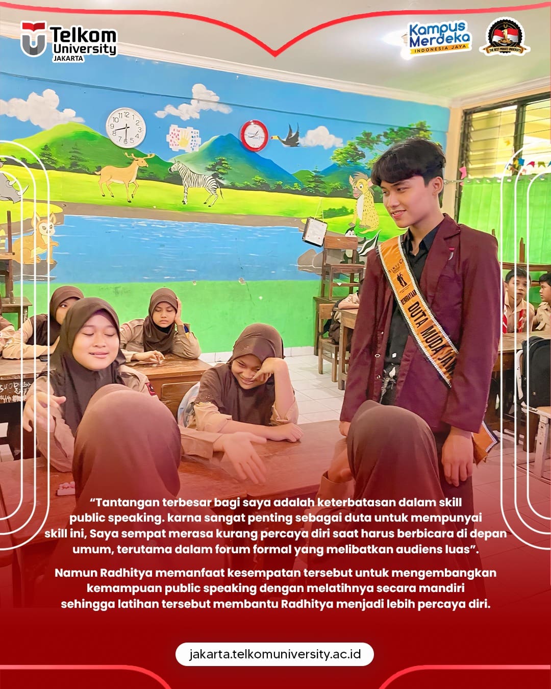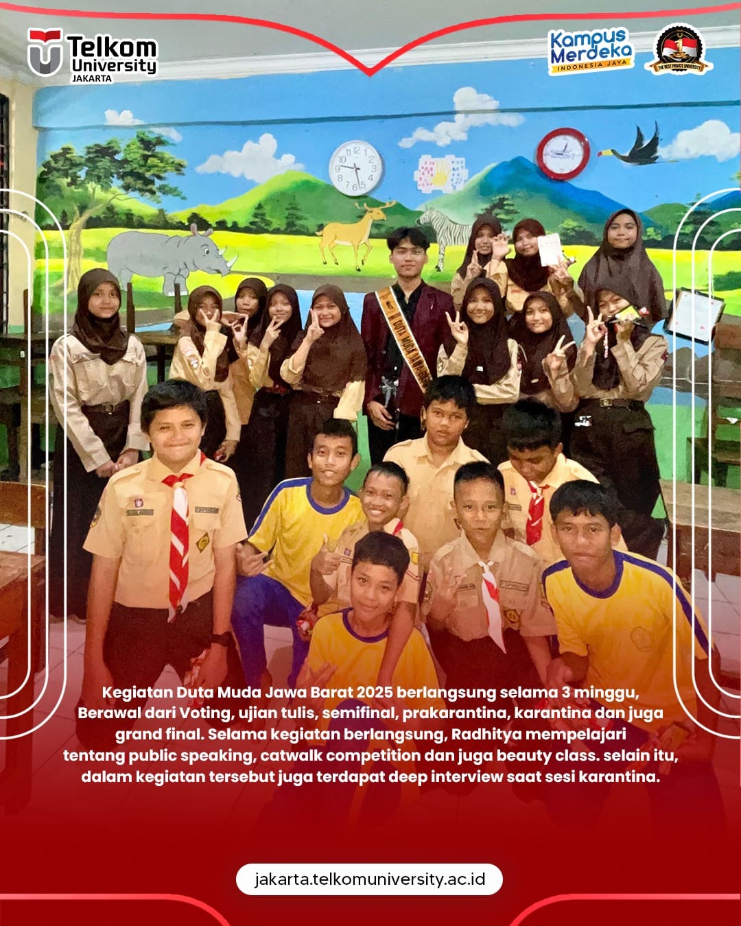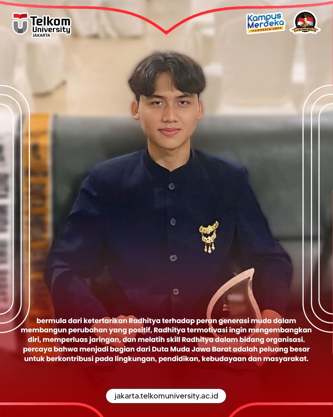Yuk, kita intip sedikit perjalanan Radhitya Ramadhan Wibisono. Radhitya adalah salah satu mahasiwa Tel-U Jakarta dari program studi S1 Teknik Telekomunikasi Jakarta yang menjadi Duta Muda Jawa Barat 2025.