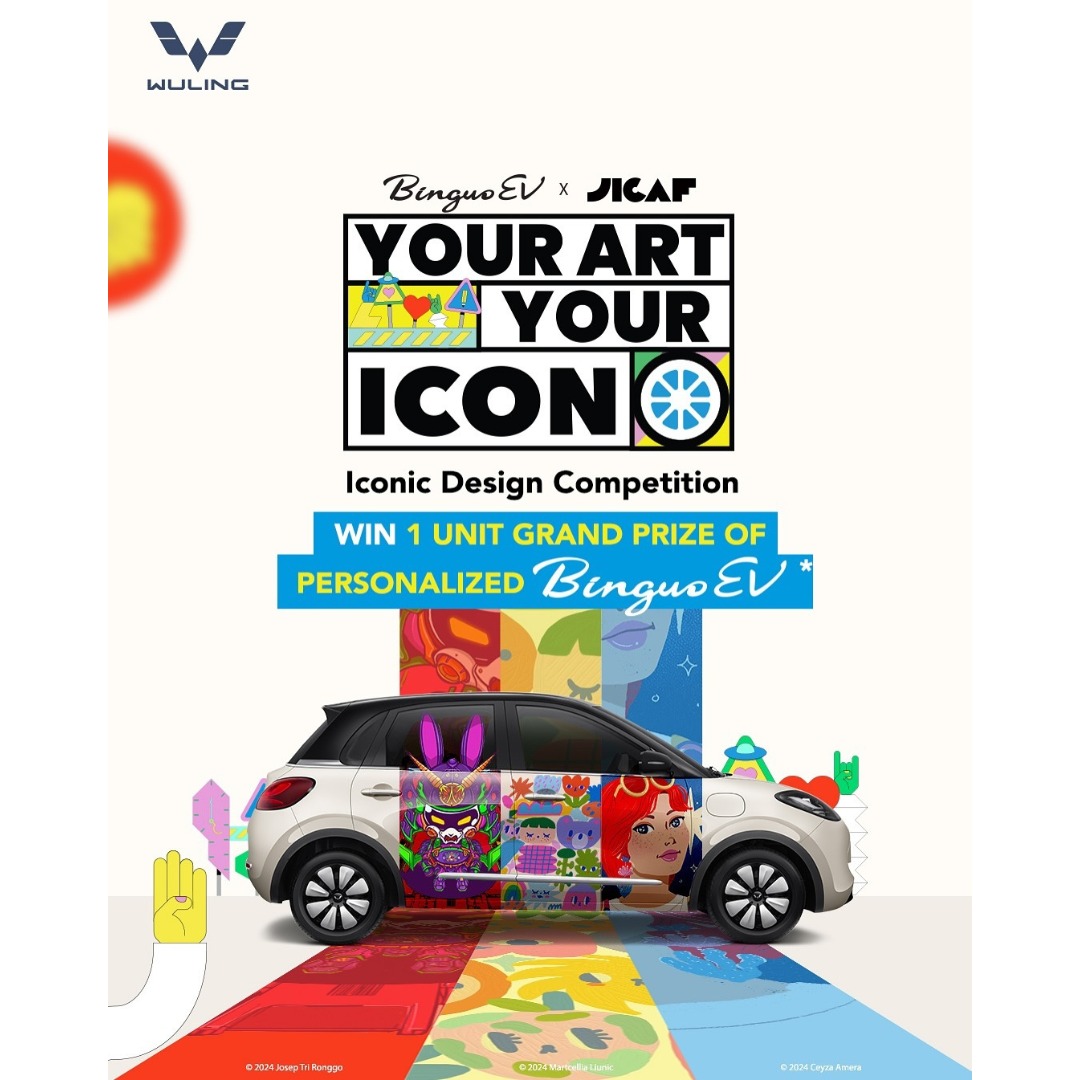 Kali ini, Wuling Motors berkolaborasi dengan @j.icaf untuk memberi kesempatan kepada para creators/illustrator untuk ekspresikan karya desain di atas wadah BinguoEV melalui wadah digital. Buat personalisasi BinguoEV dengan hasil karya desainmu semenarik mungkin!