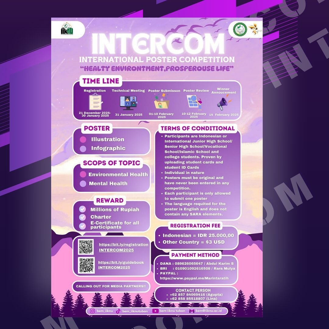 The international poster competition is an event organized by the Student Executive Board of the Nahdlatul Ulama Tuban Institute of Health Sciences, which can be participated in by students.