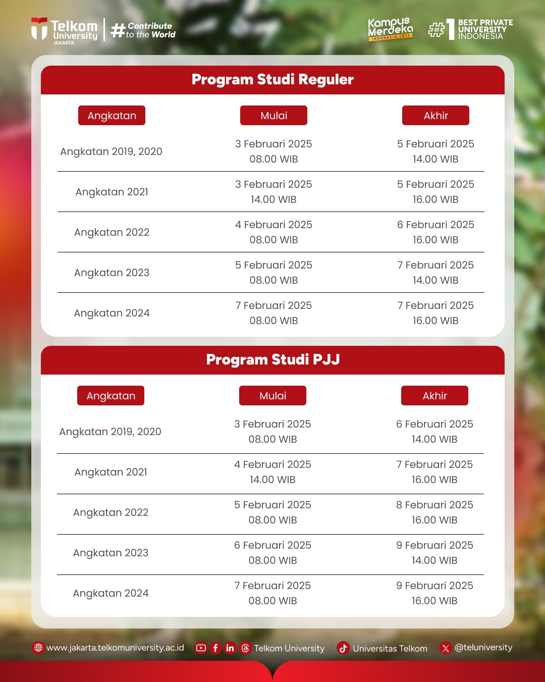 Kalian bisa cek jadwal Registrasi di Slide kedua. Tolong diperhatikan hari dan waktunya agar tidak tertukar dan terlambat.