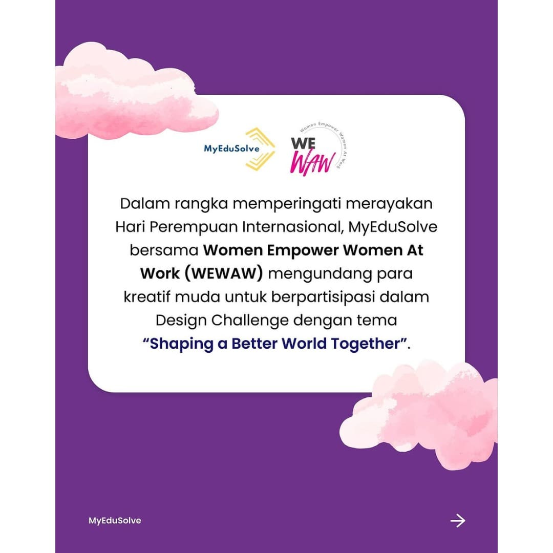 Rayakan Hari Perempuan Internasional dengan ikut serta dalam Design Challenge ini! Bersama MyEduSolve & Women Empower Women At Work (WEWAW), yuk berkolaborasi dan ciptakan karya yang punya makna serta dampak positif!✨