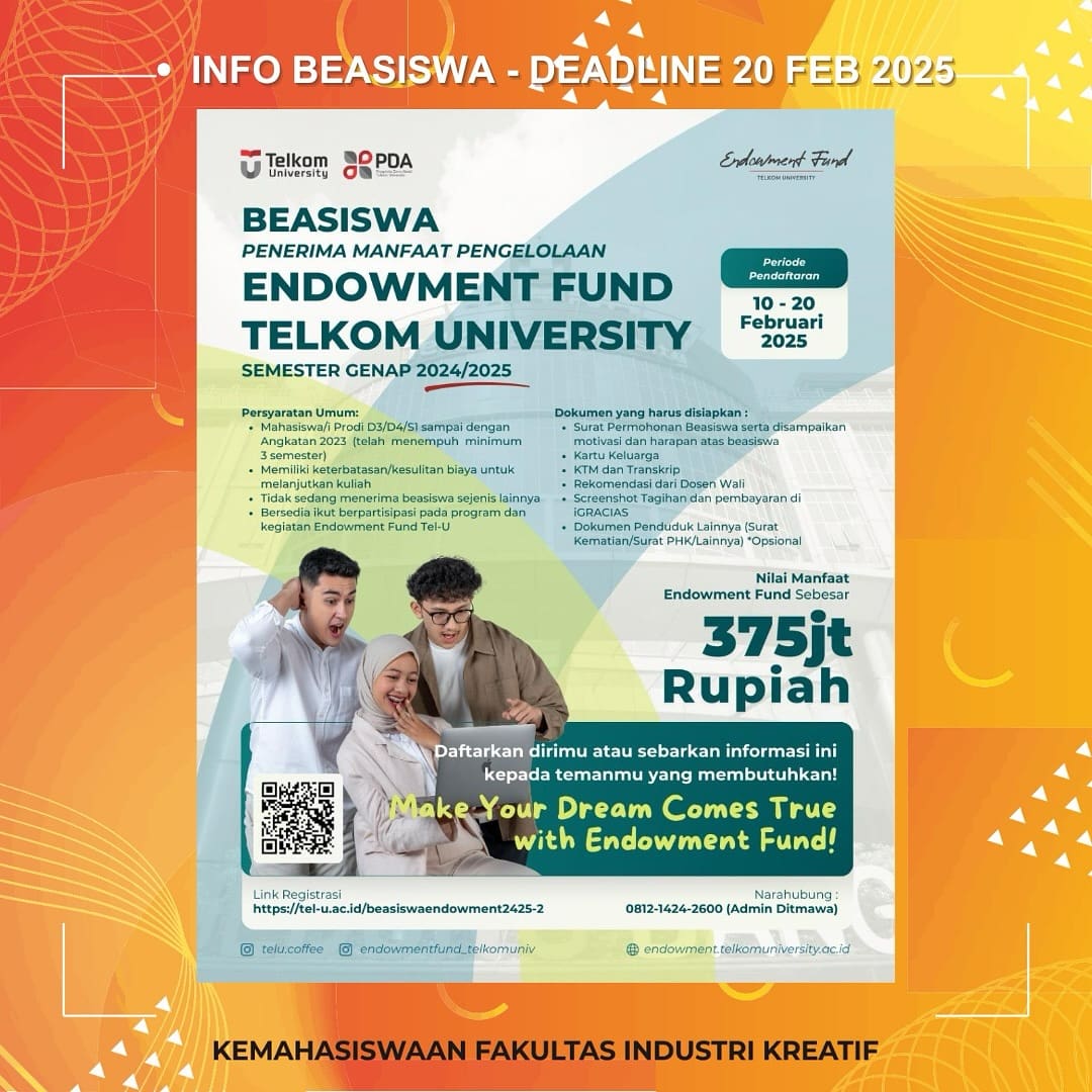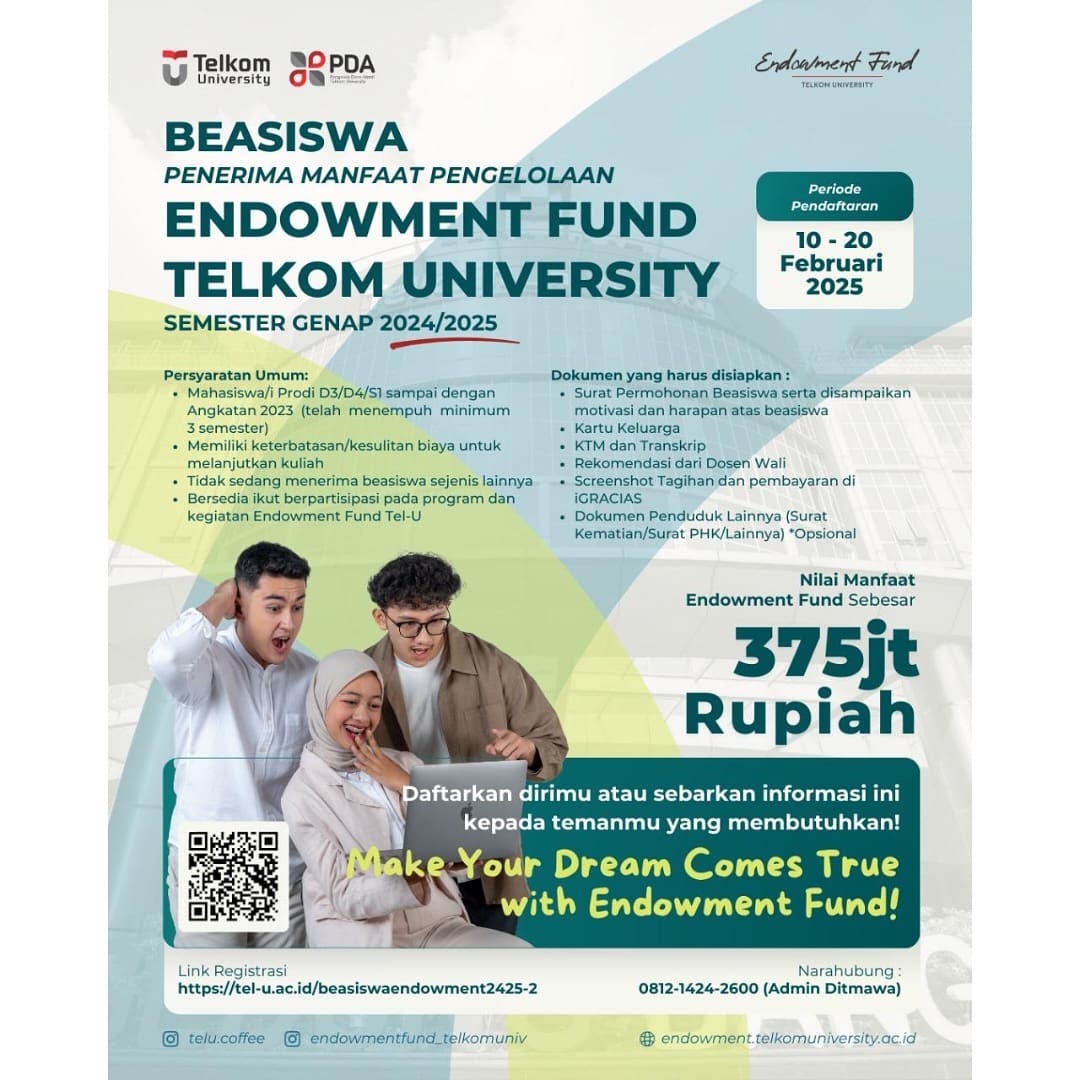 Link Pendaftaran: https://tel-u.ac.id/beasiswaendowment2425-2